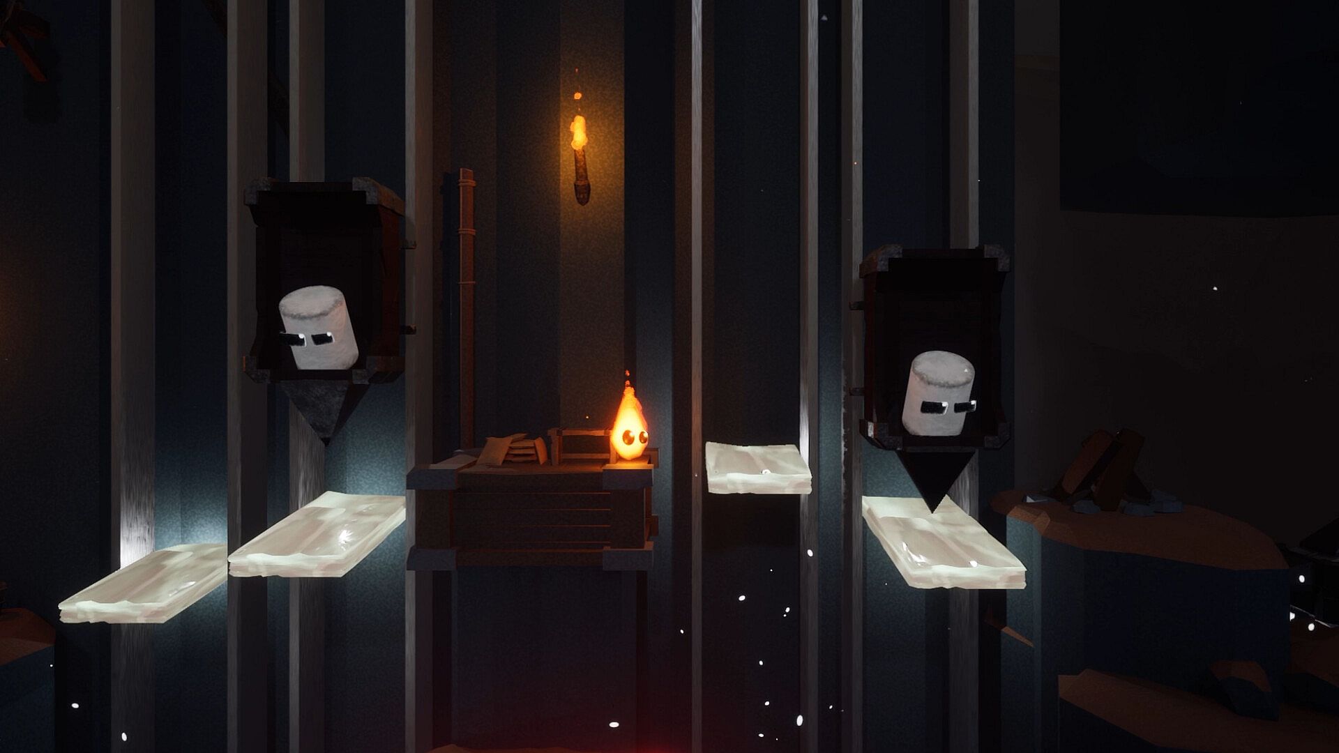 Spark Vs the Marshmallows is a 4 Player Plug-and-Play co-op/solo adventure where you fights marshmallows, save your fellow flames, and explore a variety of different environments and face off against music based boss battles! Overall this game is a mix of platforming, boss fighting, combat, and exploration! As you progress through each level, you encounter different types of marshmallows and find unique abilities!