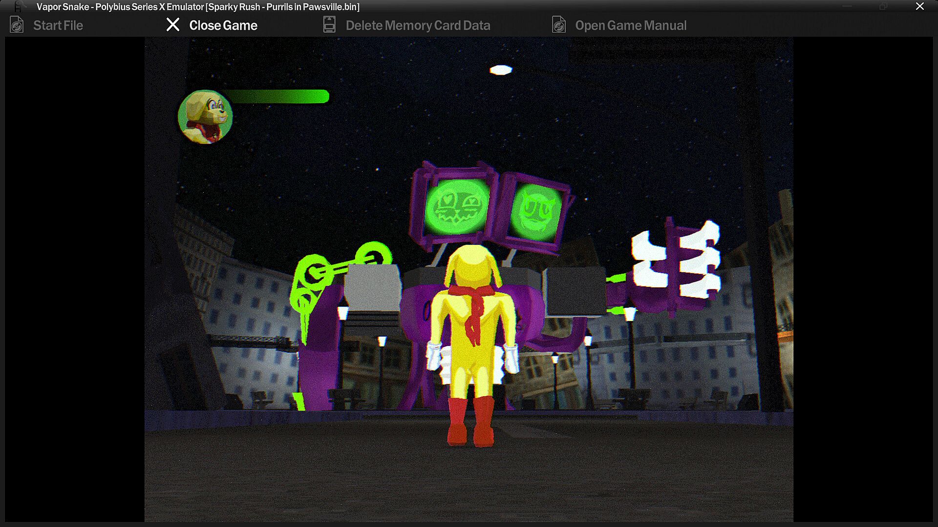 Sparky Rush is a third-person 3D platformer game from the PS1 era featuring elements of psychological and meta-horror where its developer descends into complete madness. In the story, you must help the character Sparky from the famous cartoon The Amazing Sparky! (1940) to save his friends from the clutches of the evil genius cat, Sweetie!