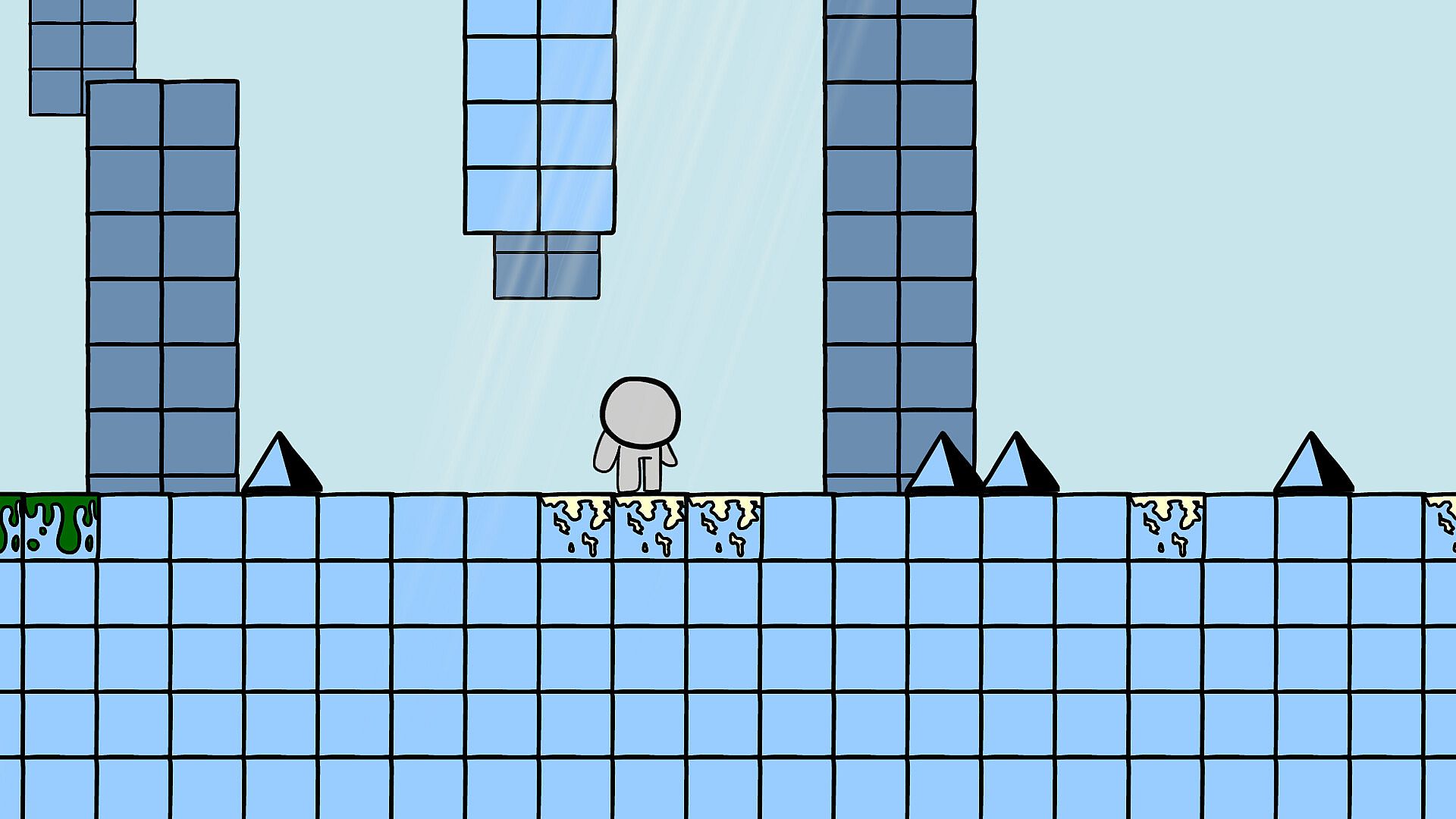 Acid block - Instantly kills you when you either land on top of one, or simply touch the acidic top of the block!
