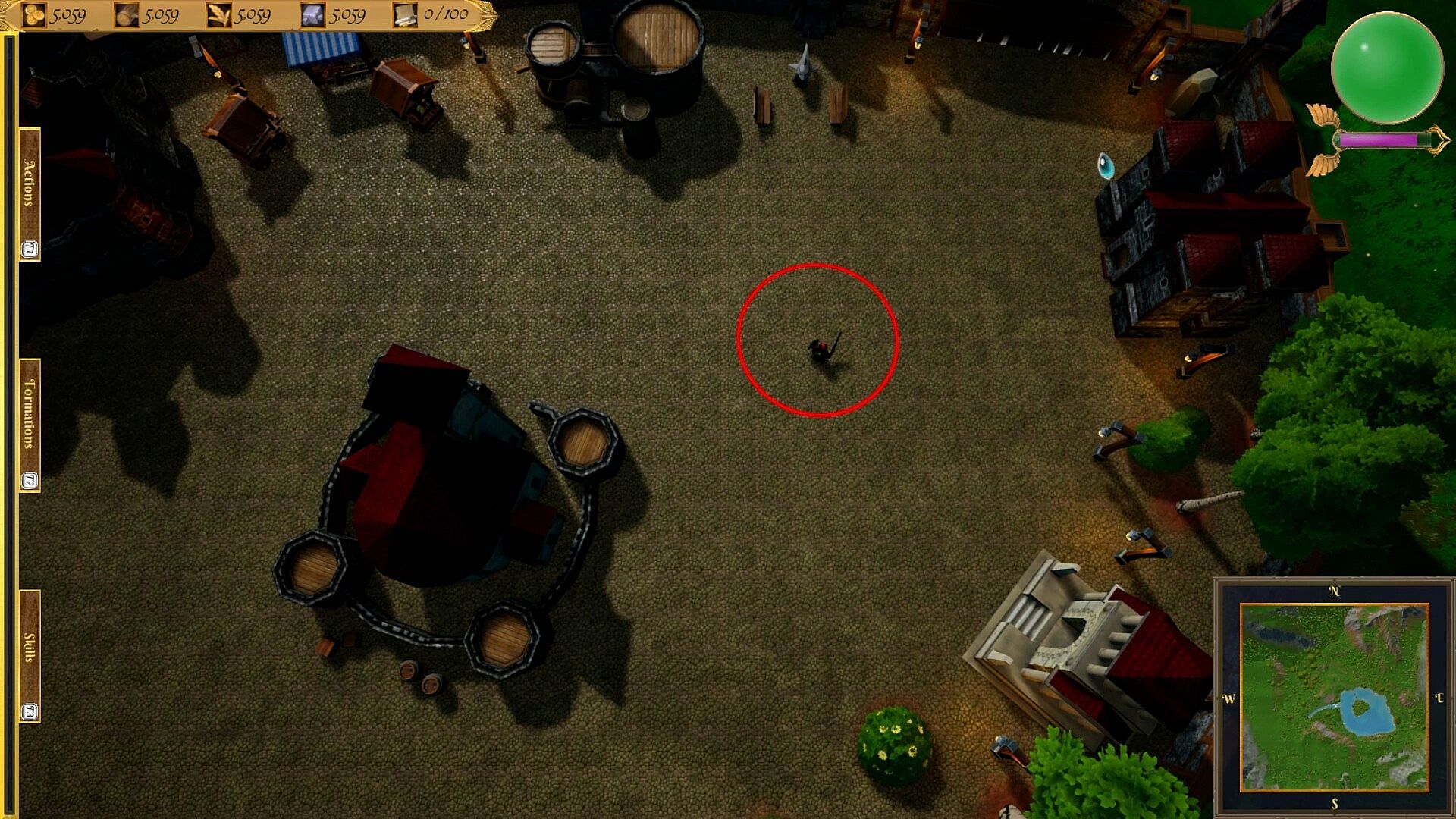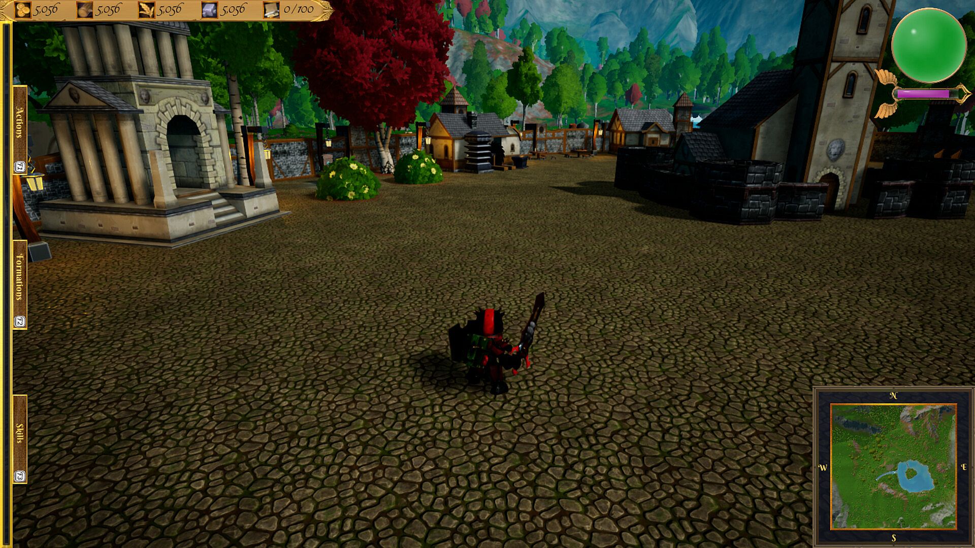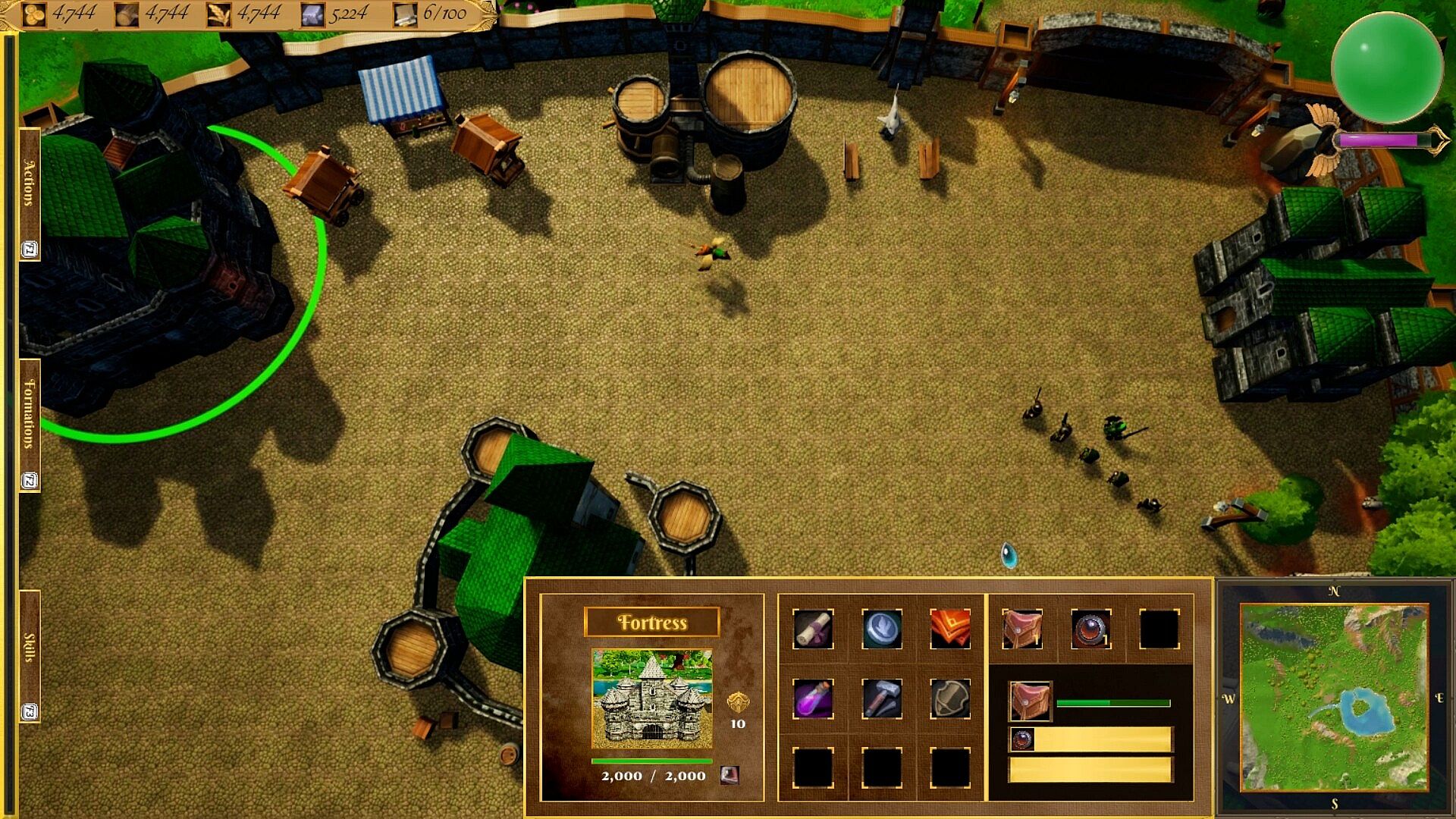 - Combination of views/game modes: You can choose between using the third-person view both to control your hero and to recruit units and produce improvements in your buildings, but if you wish, you can also switch to a classic aerial view to be able to visualize the map and carry out recruitments and improvements in the same way. You choose.
