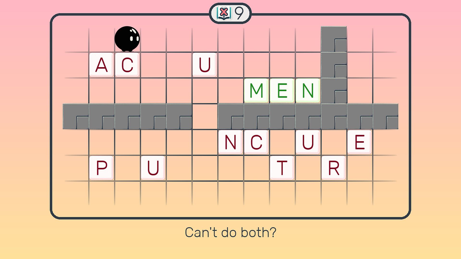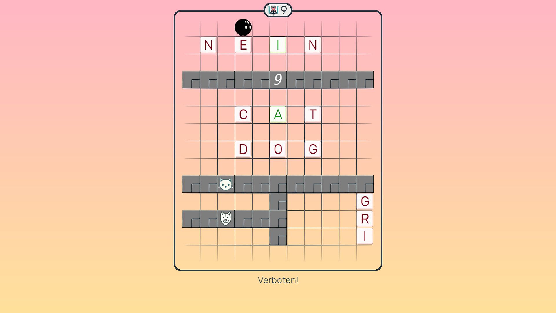 While the main challenge is word-based, there’s a moderately increasing Sokoban (block-pushing) element as the game progresses.