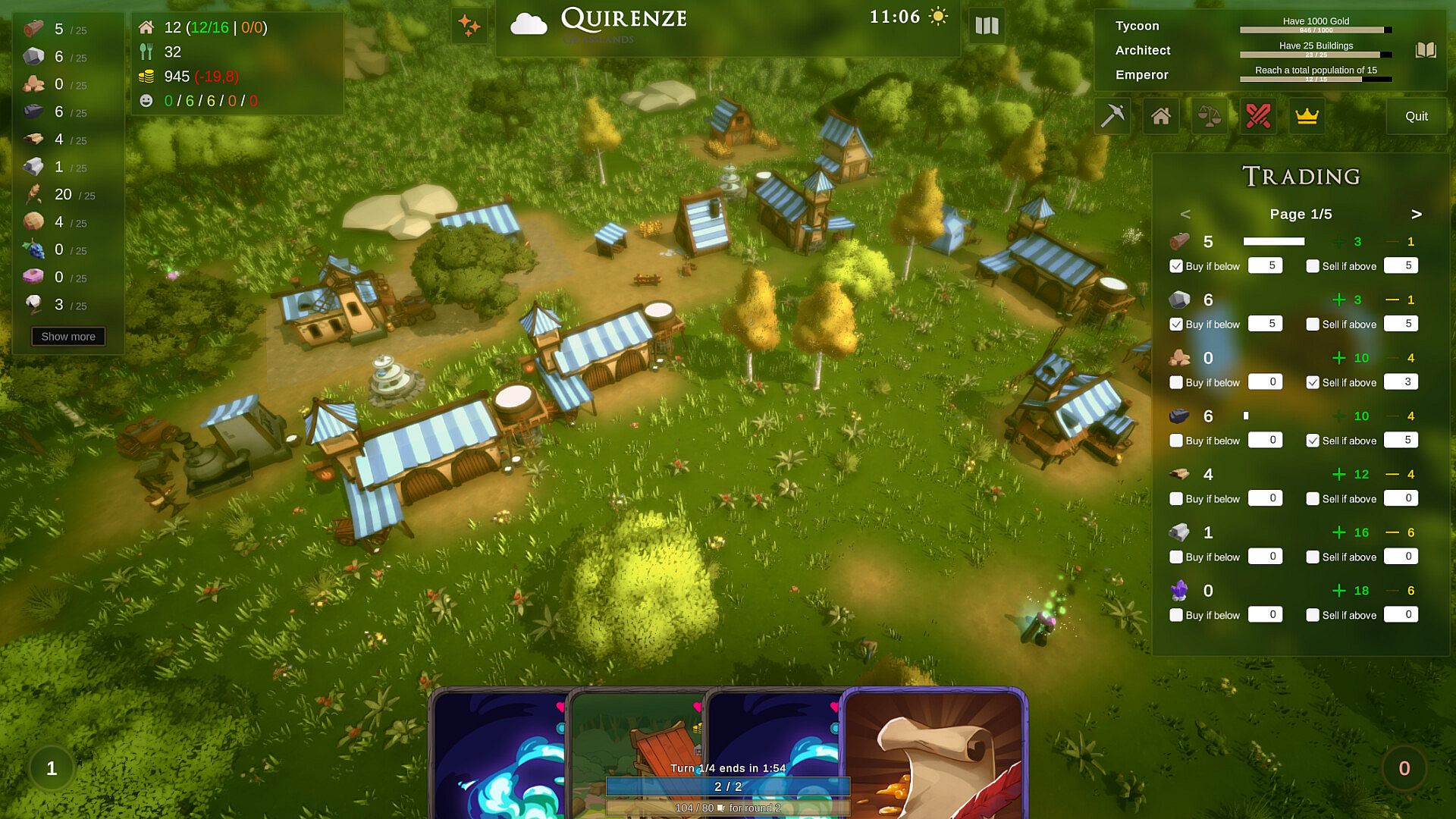 Construct, expand, and optimize your city with precision and flair. From humble beginnings to towering citadels, every decision you make influences the growth and prosperity of your realm. Set up well-oiled production lines, trading agreements, diplomacy, and military bases to reach the different end-goals the game offers. Play the cards you’re dealt and break the sandbox!