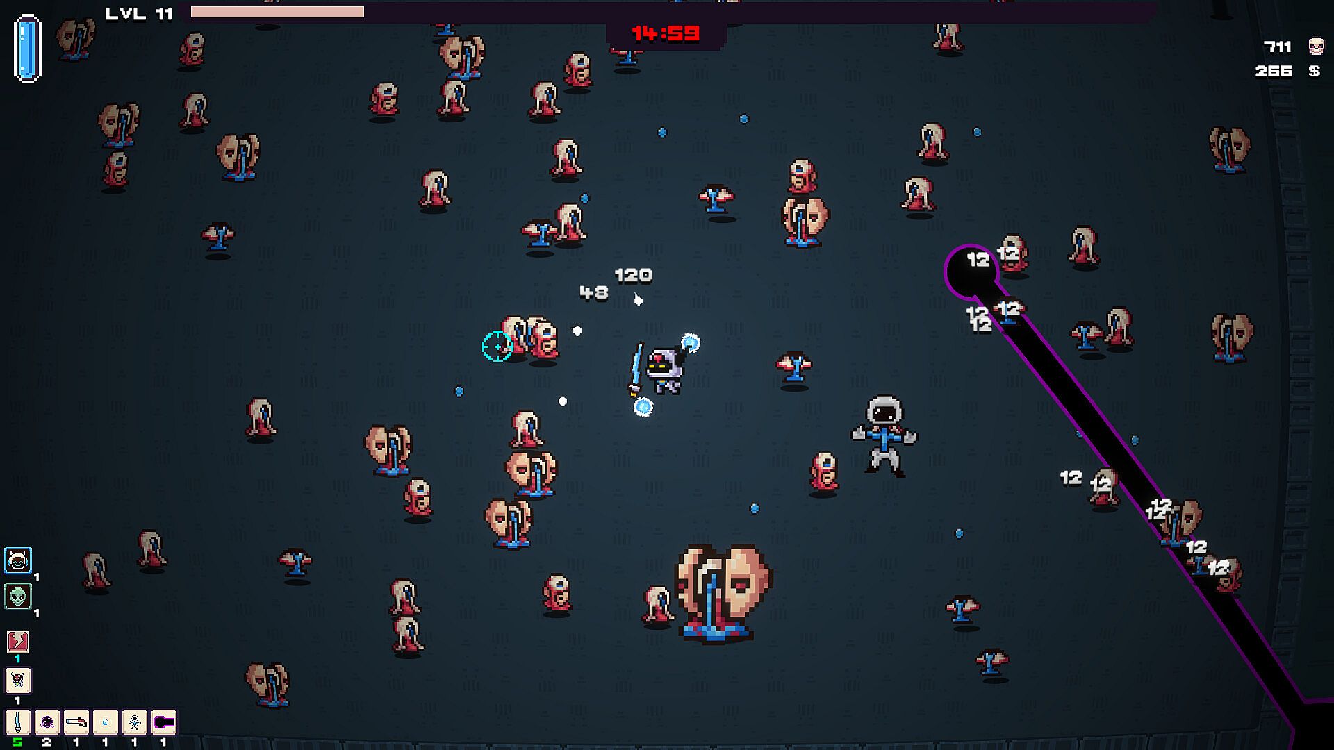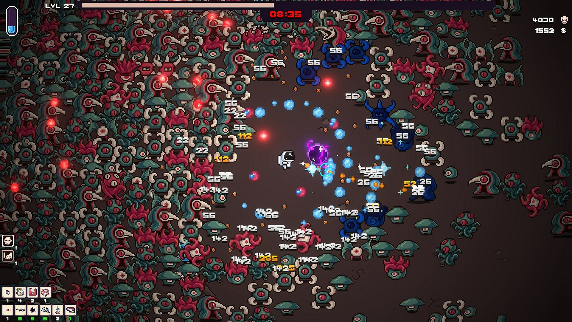 Spelp is an arena-survival game with roguelite elements. With simple twin-stick shooter controls, eliminate thousands of aliens to get stronger.