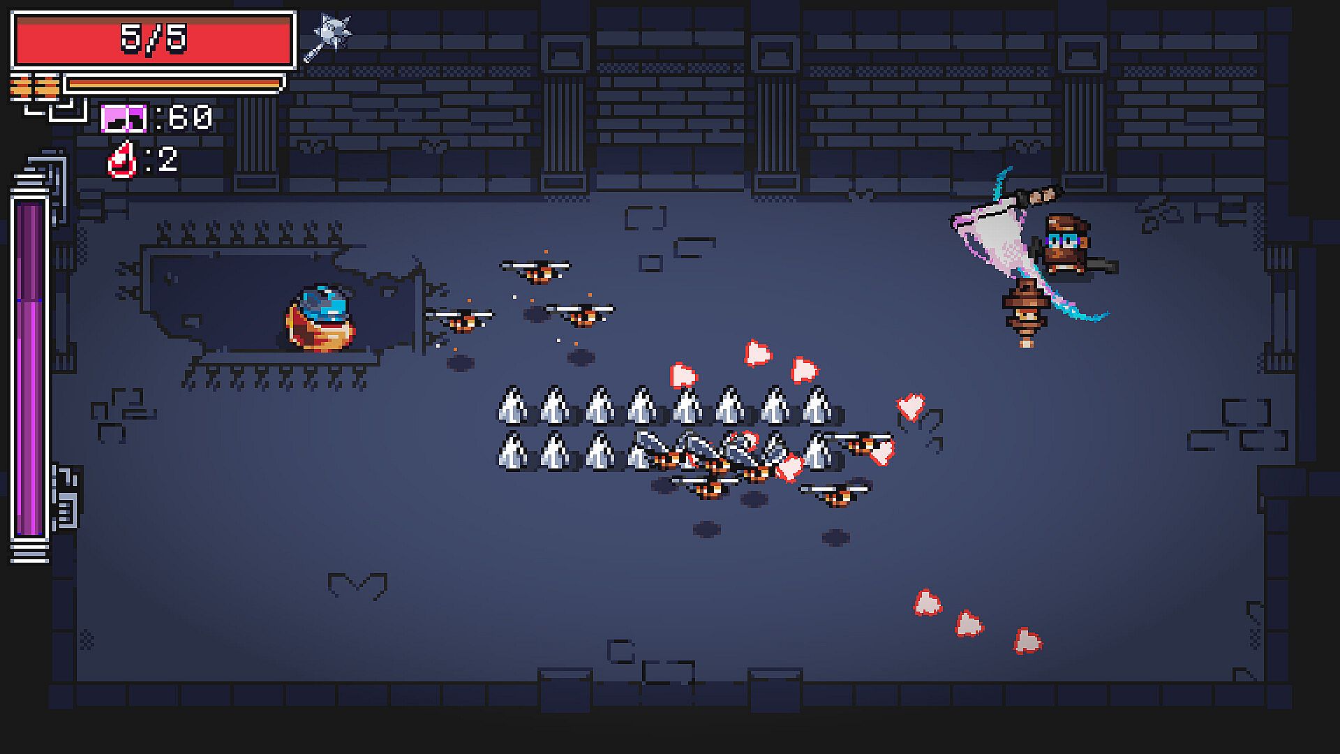 Starting with GunDude, and later with the other characters you discover, you'll fight through rooms that become more difficult and have more enemies as you make your way through the everchanging dungeon. You'll pick between characters, weapons, and upgrades as your loadout before entering the dungeon with each new run. As you get through new rooms and beat new bosses, you'll get to pick new upgrades, to create different combinations for each run.