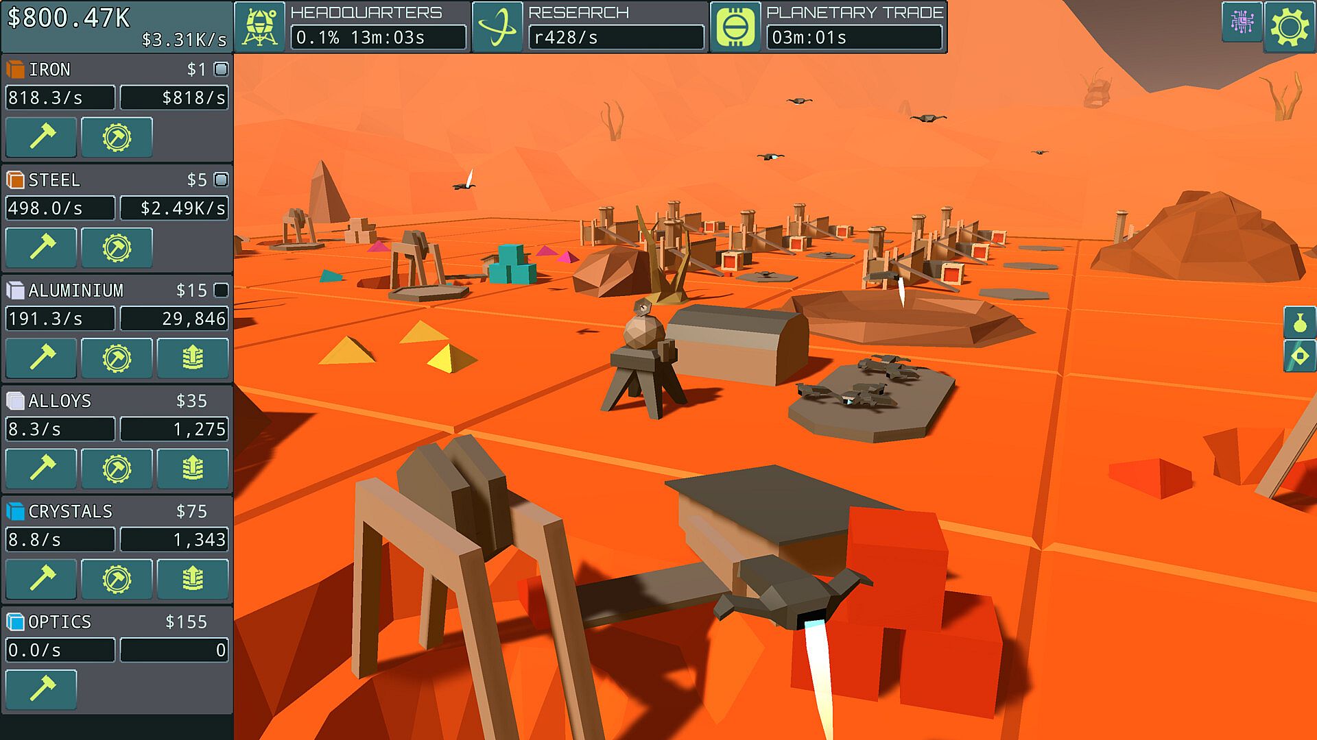Build mines and advanced factories to pull materials from the alien planet Trappist-1d, then refine them into valuable resources. Research upgrades to lift your productivity, and grab items or artifacts to tweak factories and the surroundings. Work steadily toward the funds needed for your ticket back to Earth in this idle strategy game. Minimalist design and lo-fi visuals create a calm pace, perfect for a second screen or background window you check now and then. The intentional slowness suits players who enjoy relaxed resource management without constant attention. One indie developer handcrafted every part for PC.