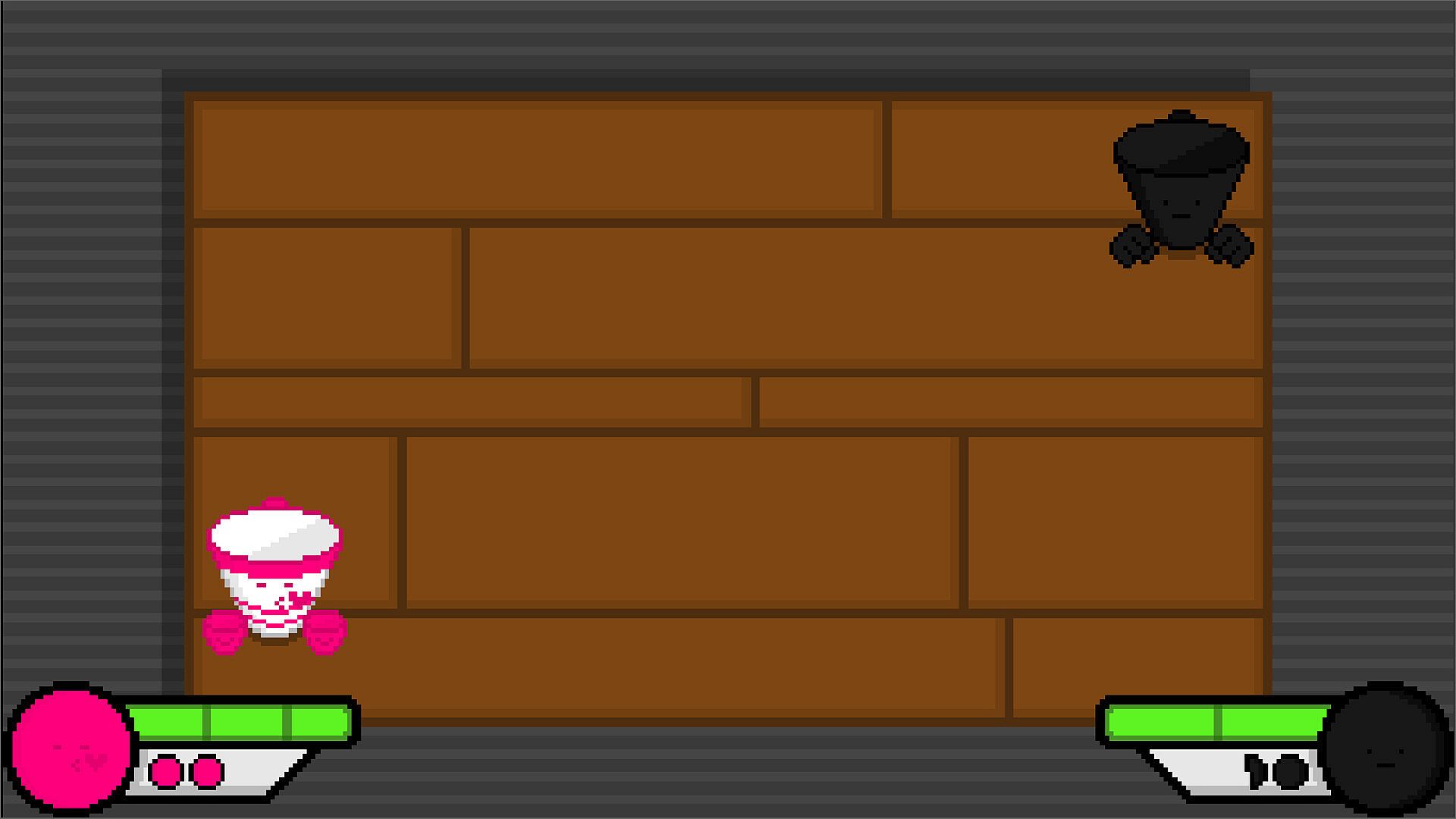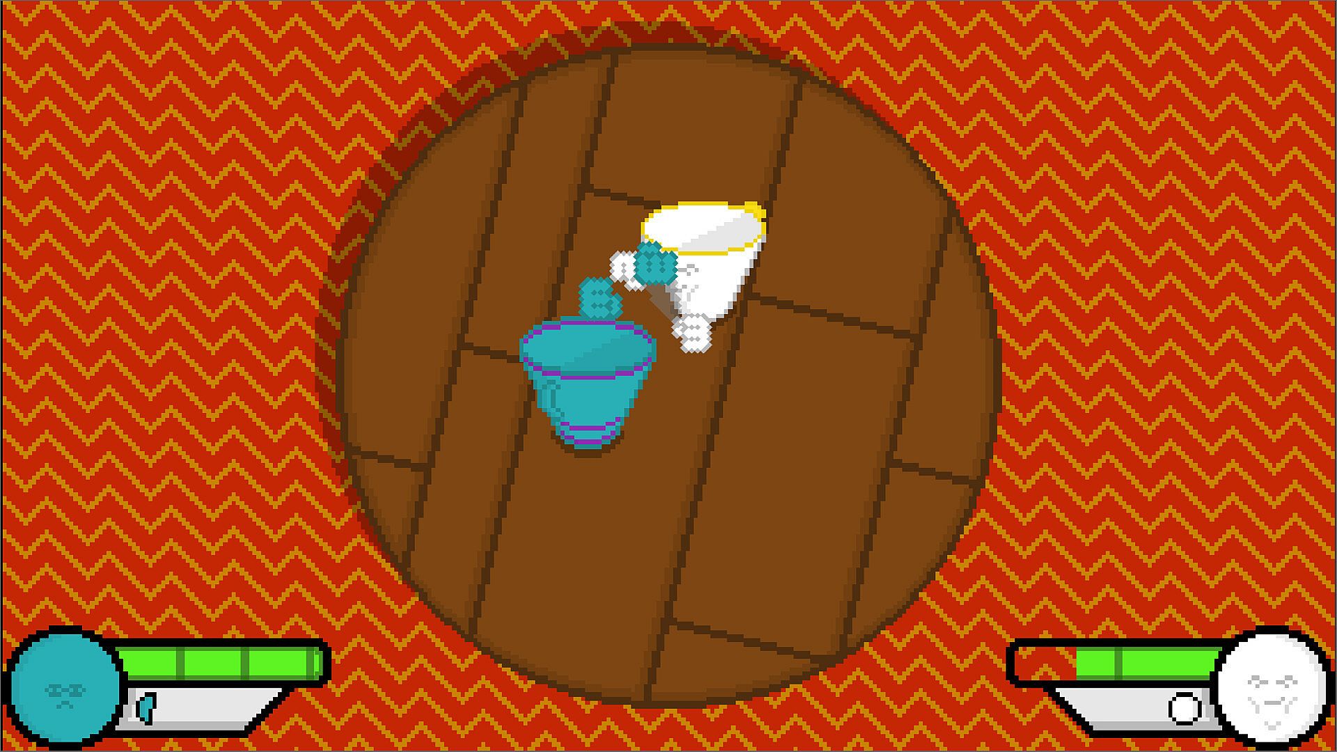 Each match is a free for all of 2-4 players, the objective is to reach the point goal (read more below in match settings), you must break the other cups either through punching them or pushing them off the table, the last cup standing gets half a point and all cups reset their health and position to fight again, once a cup gets a second half point, it becomes a full point and all other cups lose their half point (if any) but choose 1 of 3 upgrades to help them make a comeback (these upgrades are chosen from a pool of various upgrades, making each cup have a different set of powers), the match ends once someone reaches the point goal.