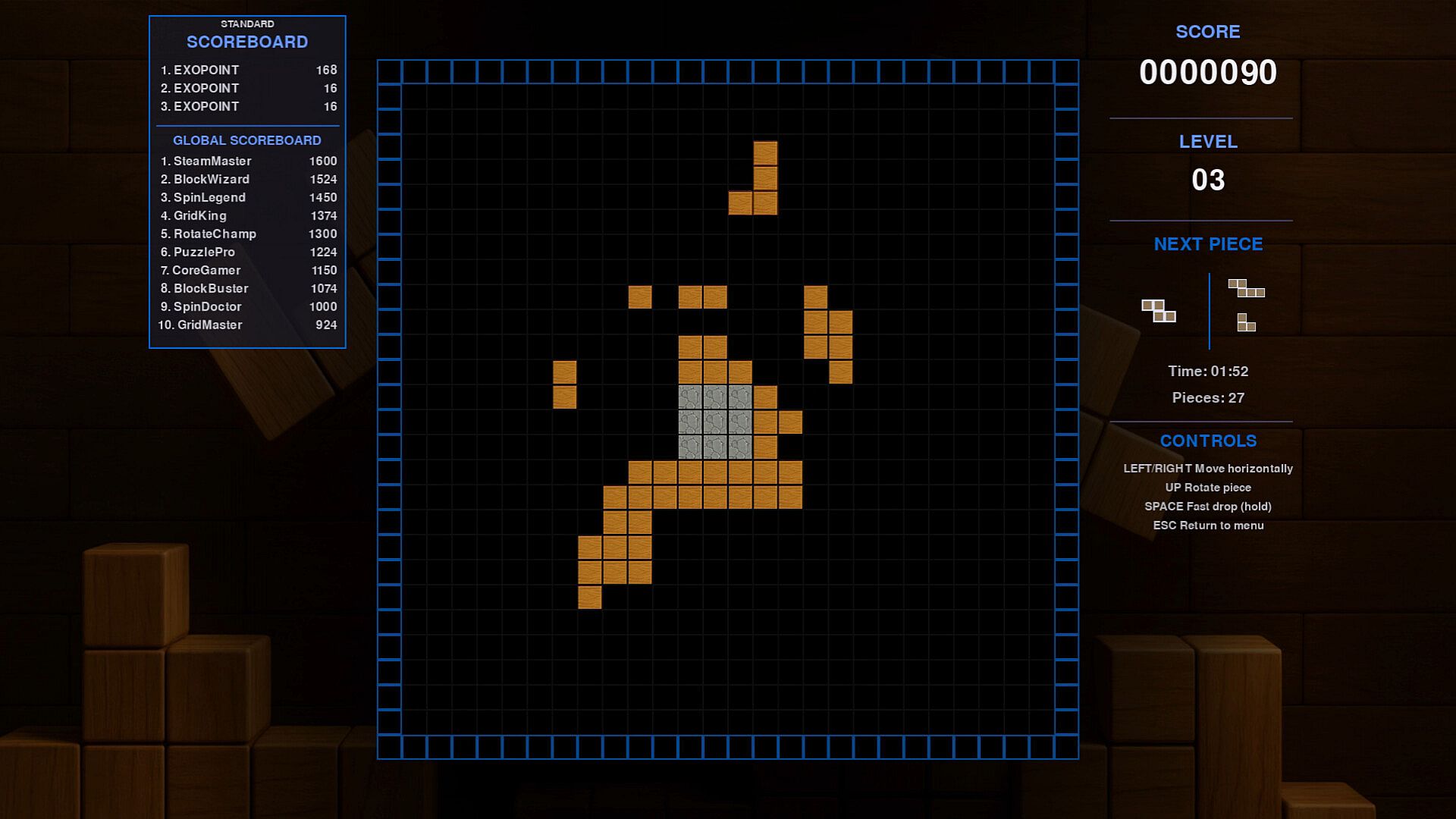 3x3 Challenge – Forget line clears; the goal is to form 3x3 blocks for points. Simple to learn, tricky to master.