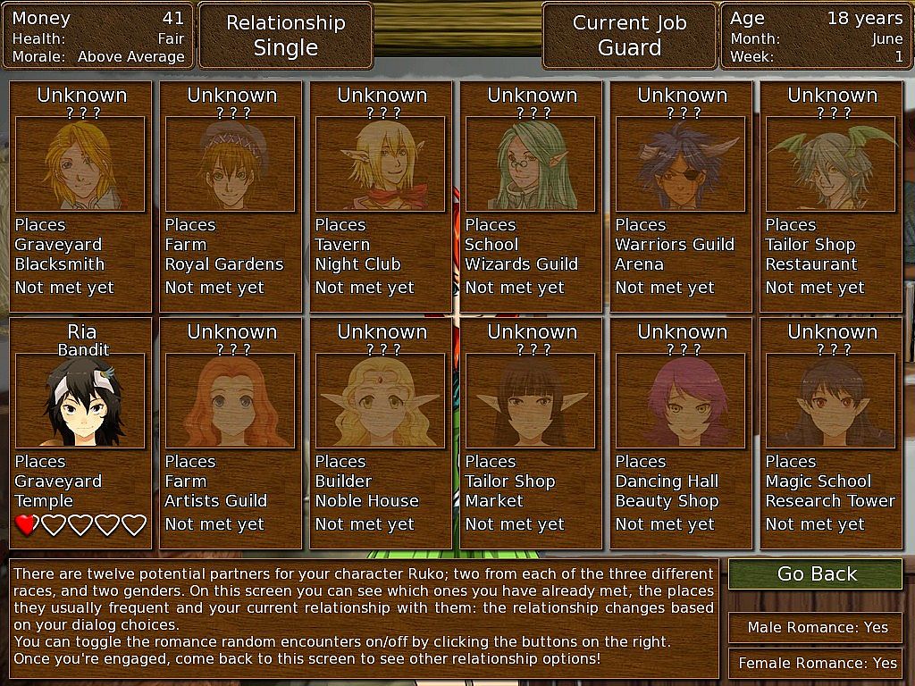 Once the game start you'll be able to run your life in a virtual fantasy world: choose a job from the 20 different ones available, but carefully check the minimum requirements.