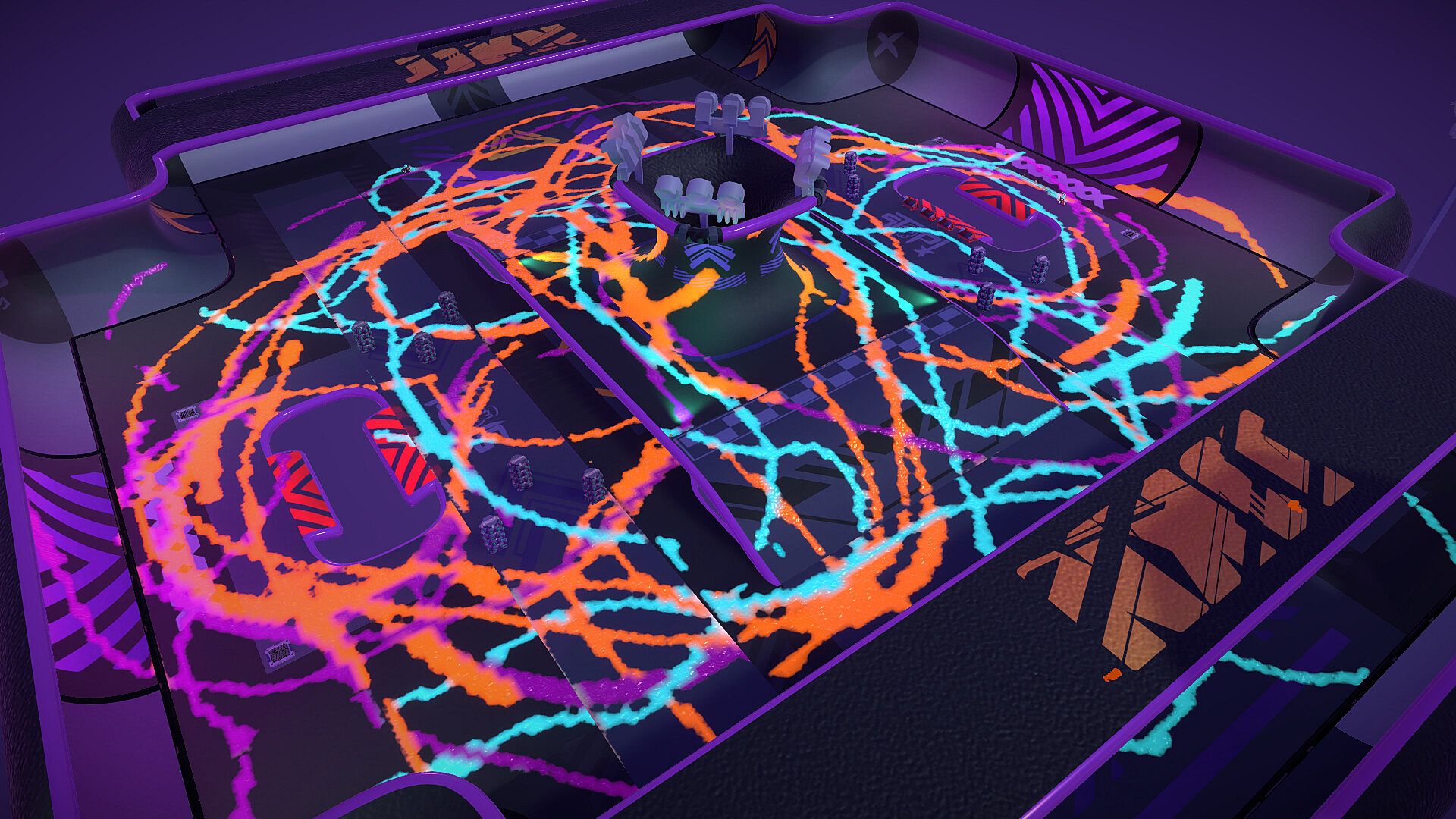 Race. Drift. Splatter. The player who covers the most territory in their colour wins. Every drift refills your paint tank. Power-ups scattered across the map give you the edge you need.