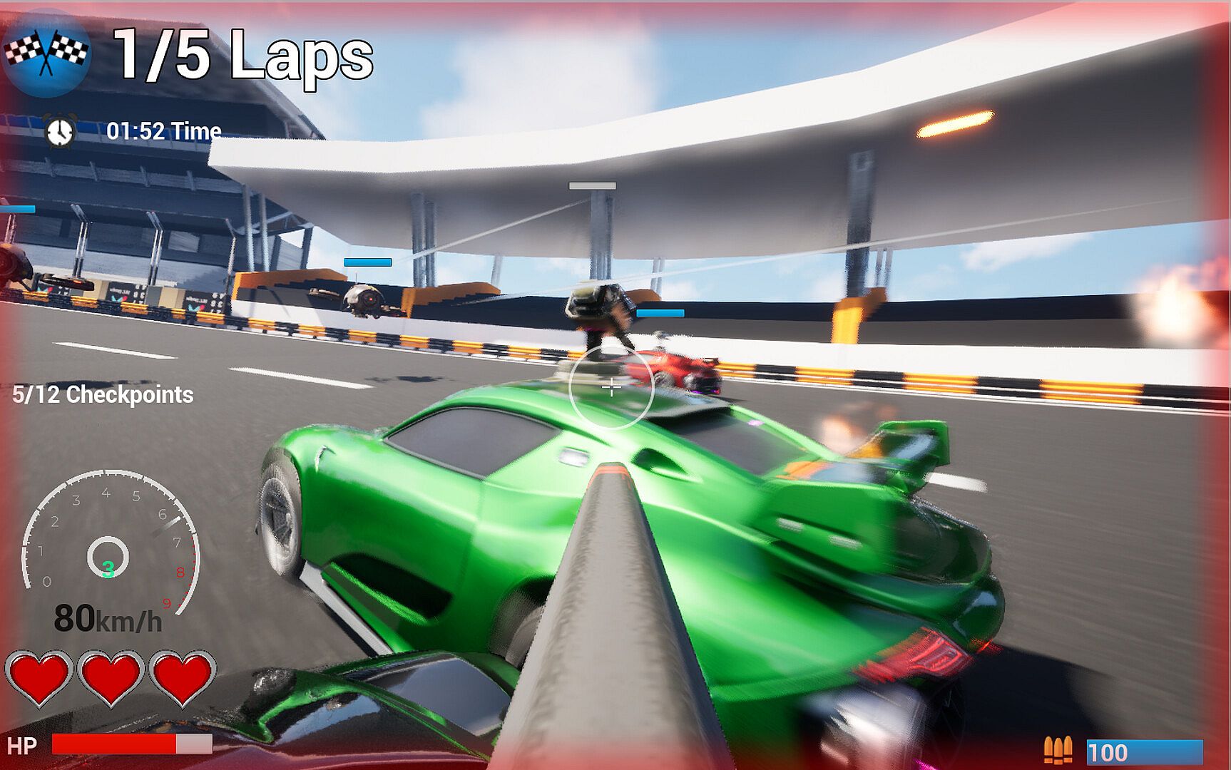Gun-equipped enemy cars: patrol the road and shoot at the player; takedowns grant time