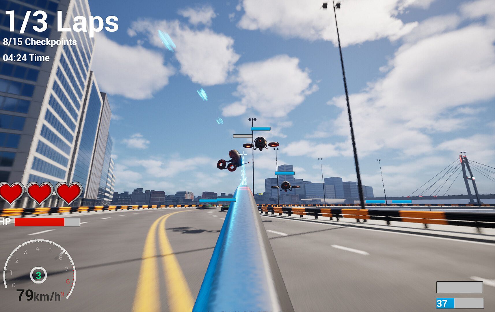 Tight timer, enemy interference, drone pressure, racing line and firing-angle decisions