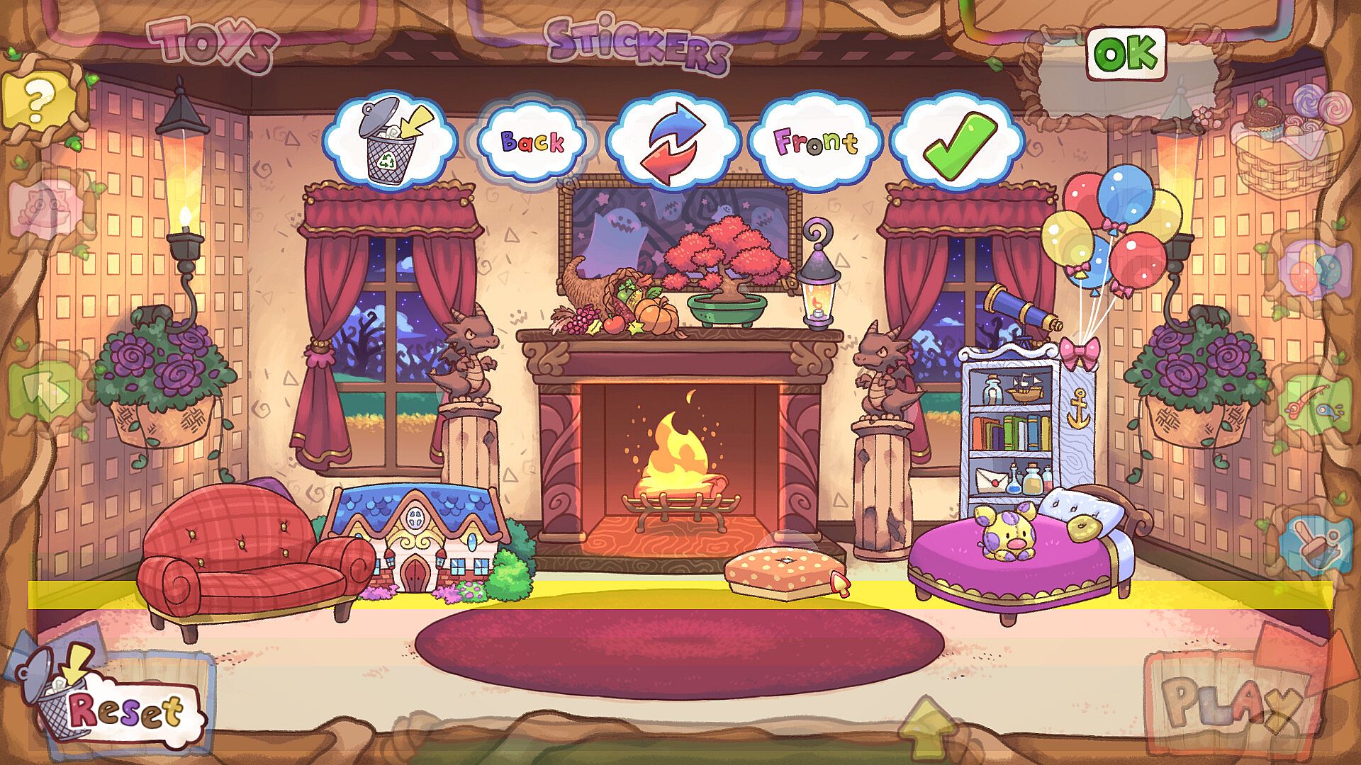 Decorate and Customize! Unlock new backgrounds, furniture, stickers, and toys! With hundreds of items to choose from, you can make a room that's uniquely yours.