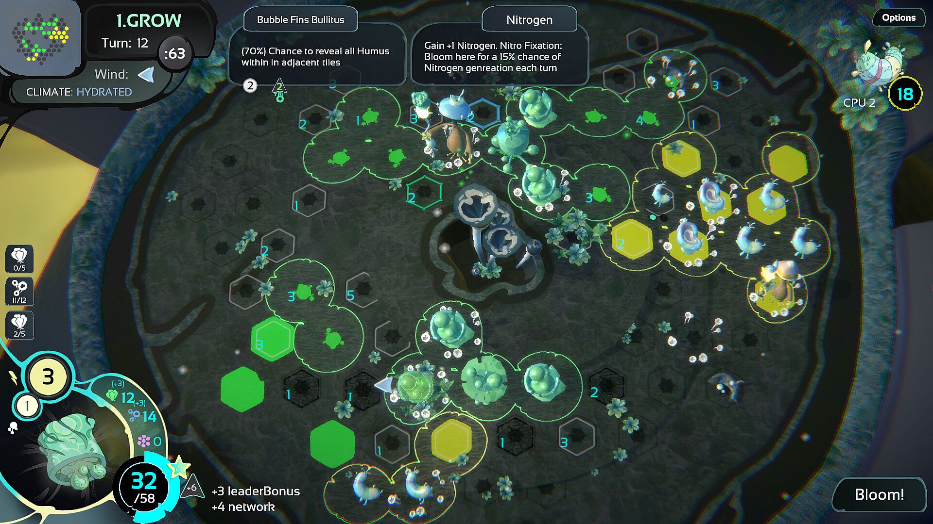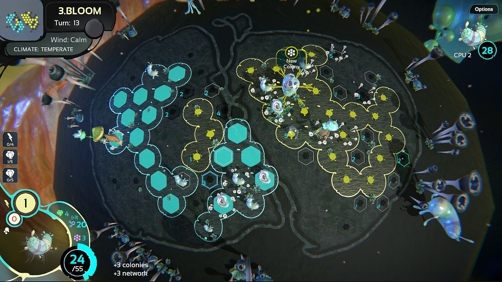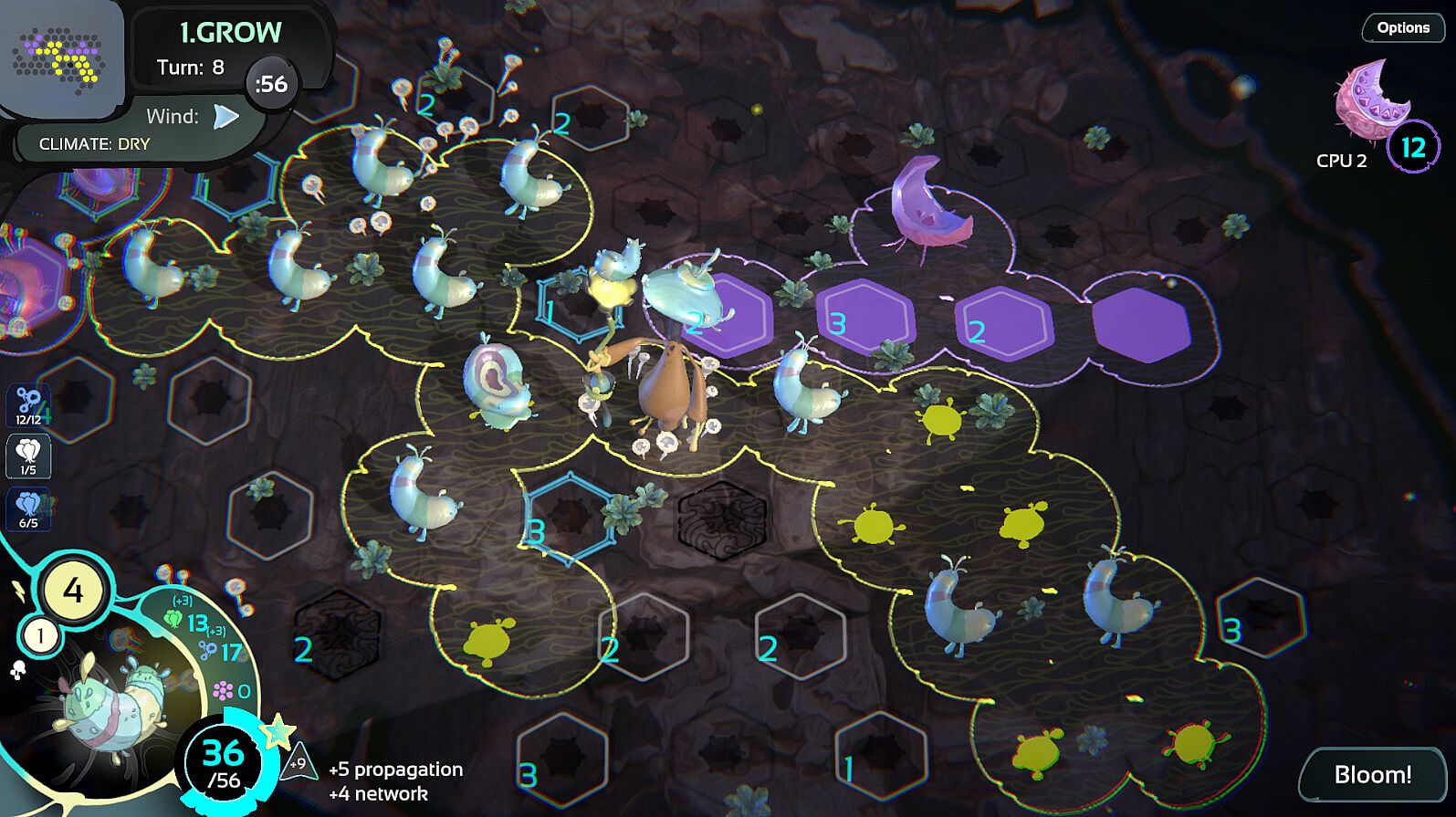 Challenge Friends or the CPU; whomever lands Spores nearby, thoughtful turn mechanics will provide surprise and discovery on every turn as you cohabitate the living environment.