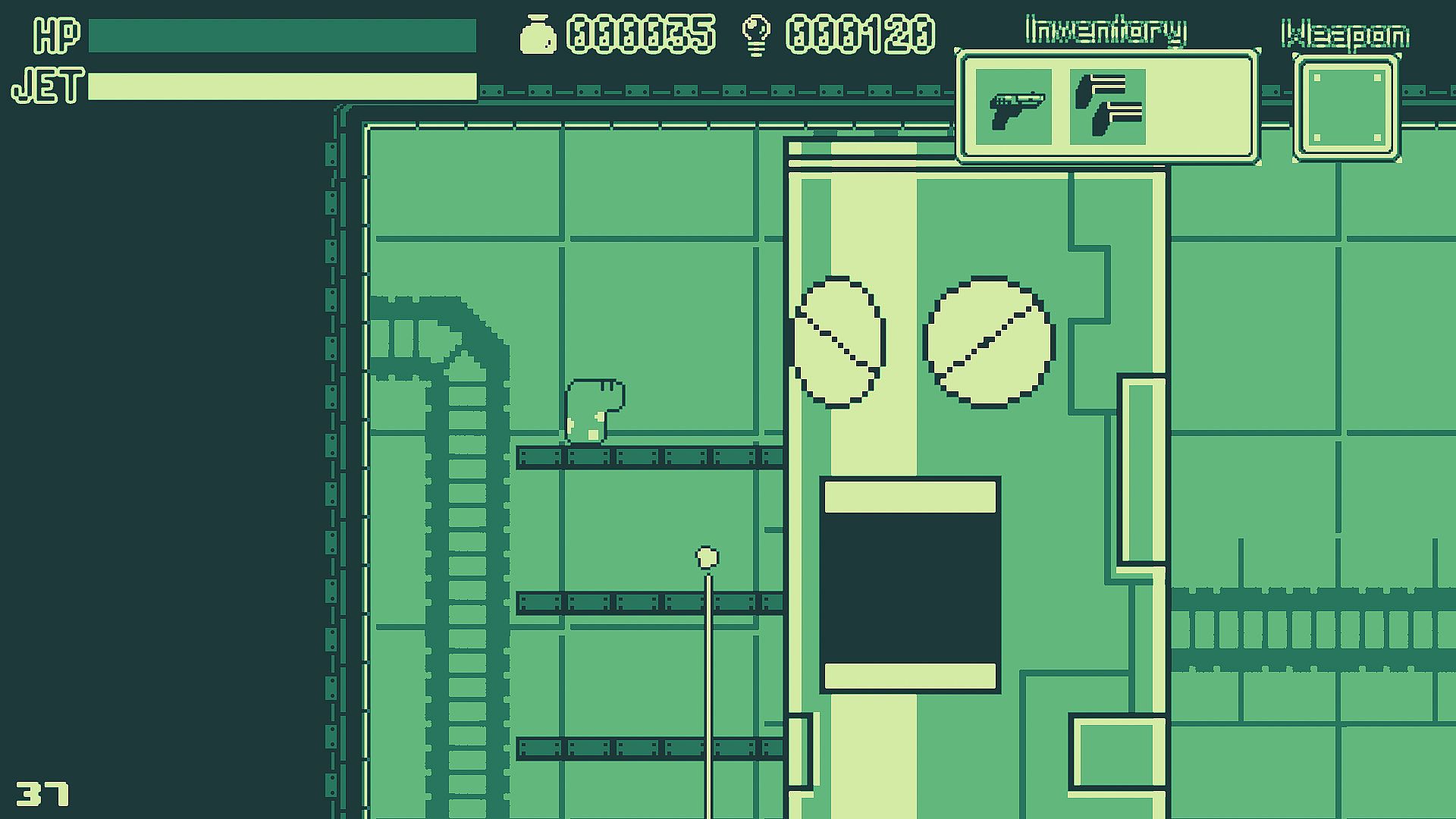 During the briefing scene, money and exp gained during the stage can be used to purchase weapons and unlock skills to enhance the player.Weapons include shotguns, homing and piercing bullets, and many others.