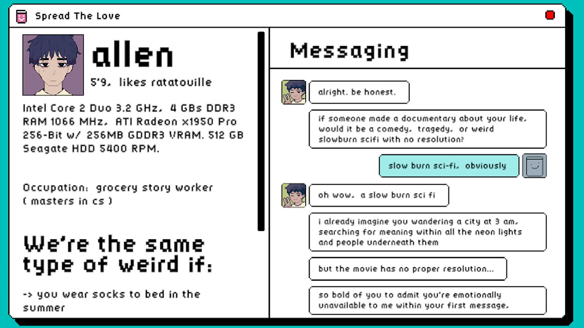 Welcome to Spread the Love, the world’s stickiest () dating simulator where your love life is determined by a deeply scientific (not really) jam-based personality quiz. Are you a mysterious blueberry? A comforting peach? Maybe even… a flirty mango?