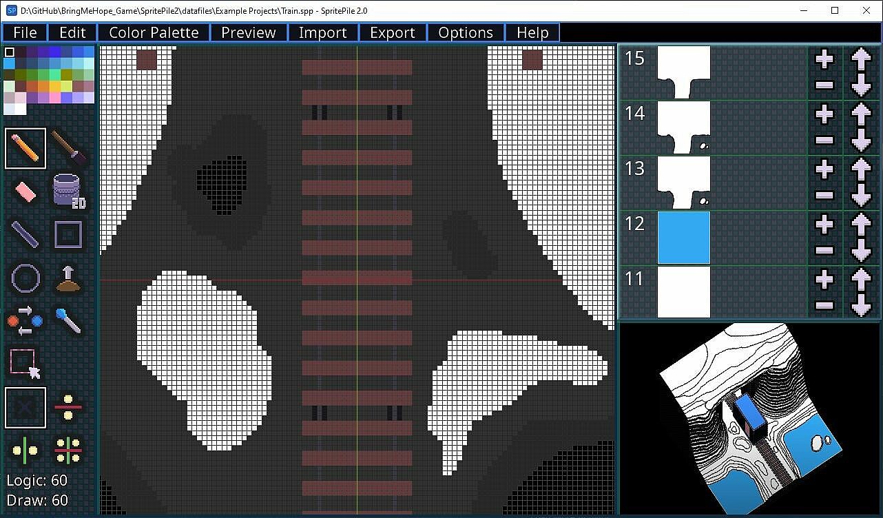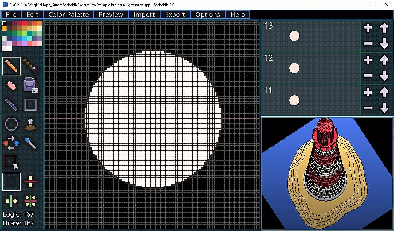 - Brush (Works exactly the same as the pencil in Aseprite)