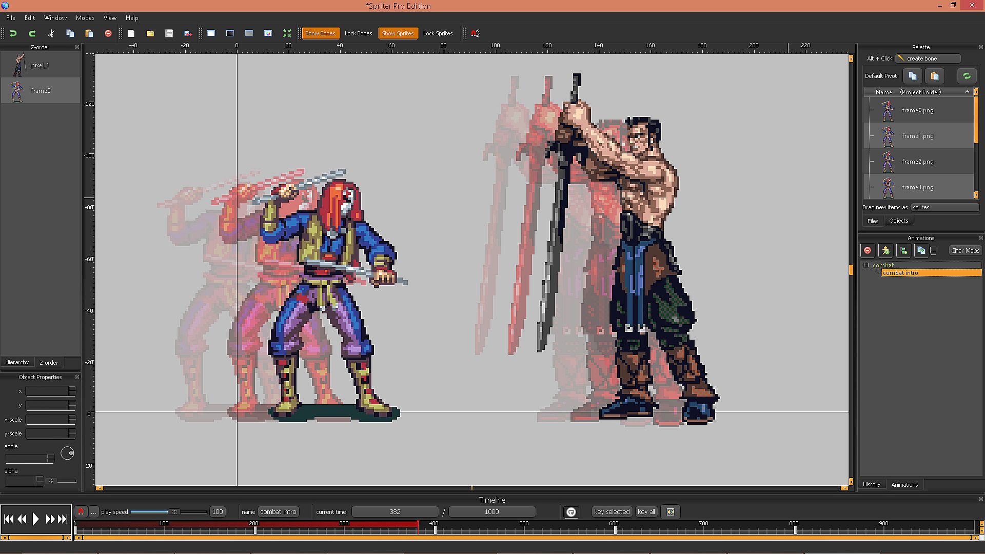 Spriter also takes advantage of skeletal animation. Create a skeleton using the bone tool, attach images to each bone, and finally animate the bones with Spriter's vast array of user-friendly animation tools. The result: a fully animated sprite using your own graphics.