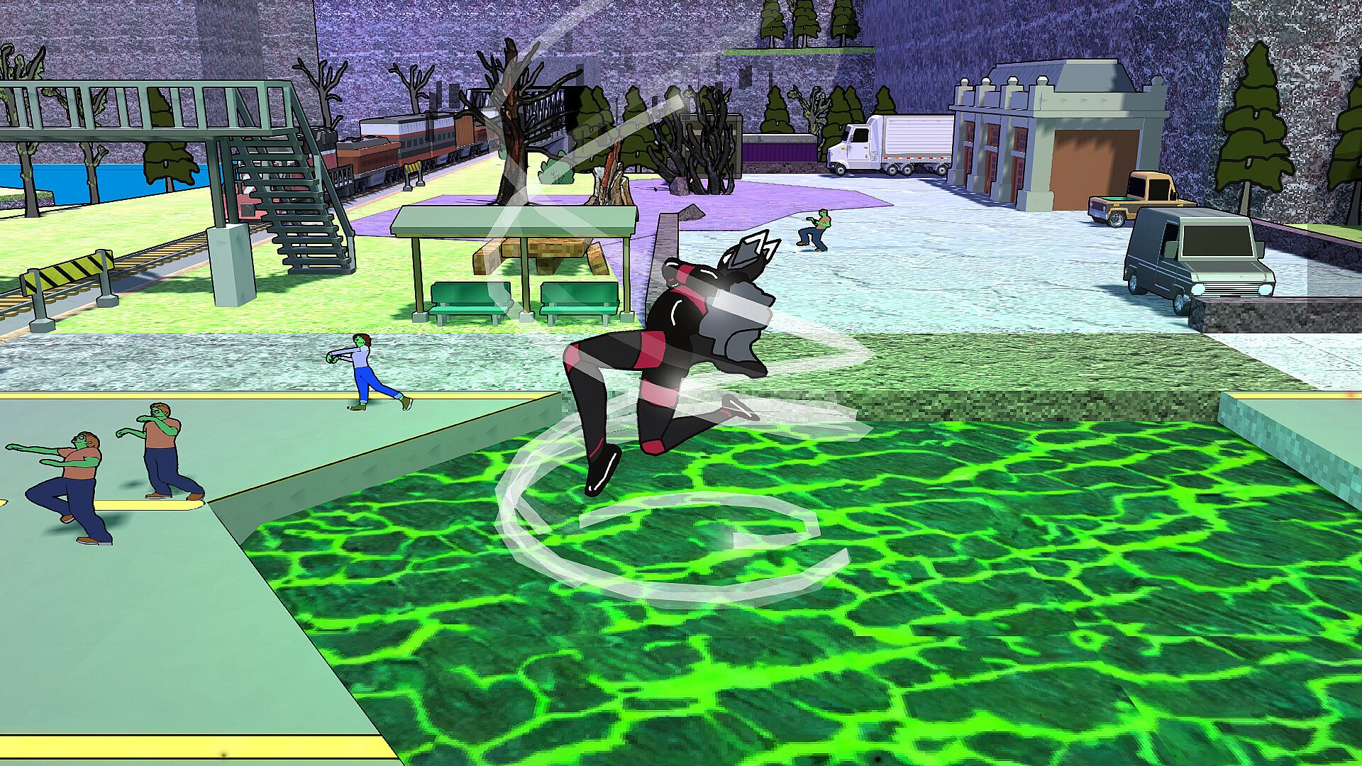 Instead of turning, infection gave Deshaun green skin and super powers. He can manipulate friction on an electromagnetic level. This allows him to slide and stick to any surface. Halting his own connection to gravity for a short time to cause immense heat. Along with friction based powers he has super strength, increased range of hearing, and durability. 3 factions of survivors divide the remnants of this once safe city. It's up to Spryward and his friends at the Adams Corporation to hold back the zombie virus, all while this new wave of villainy manipulates these factions. This game takes place in the Apastron universe.