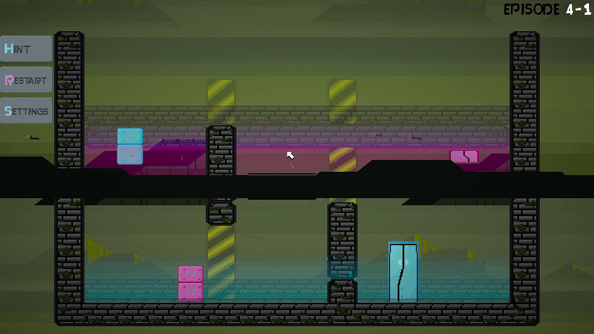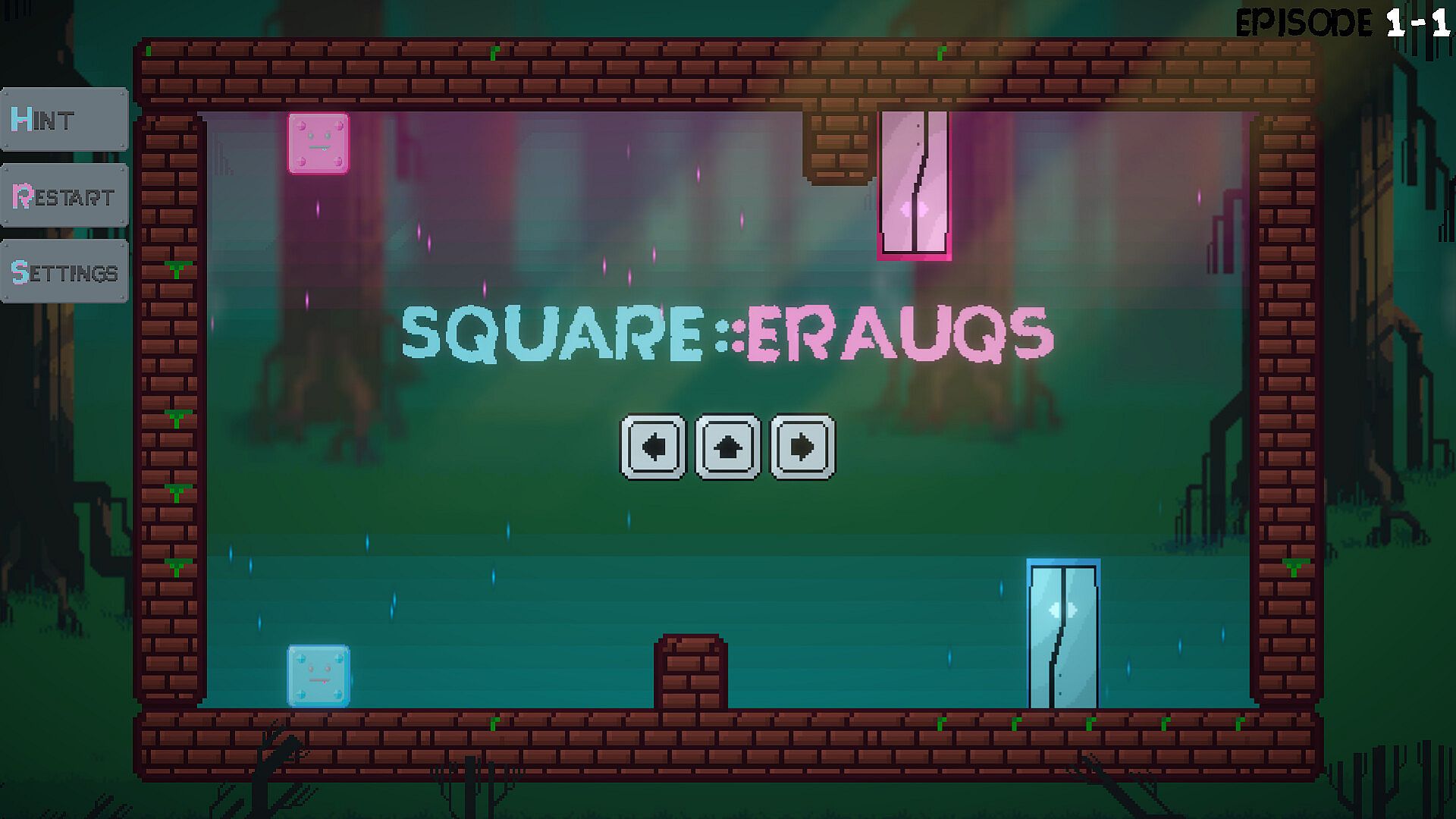 SQUARE::ERAUQS is a puzzle-platformer game where you guide two squares through color-matched doors.