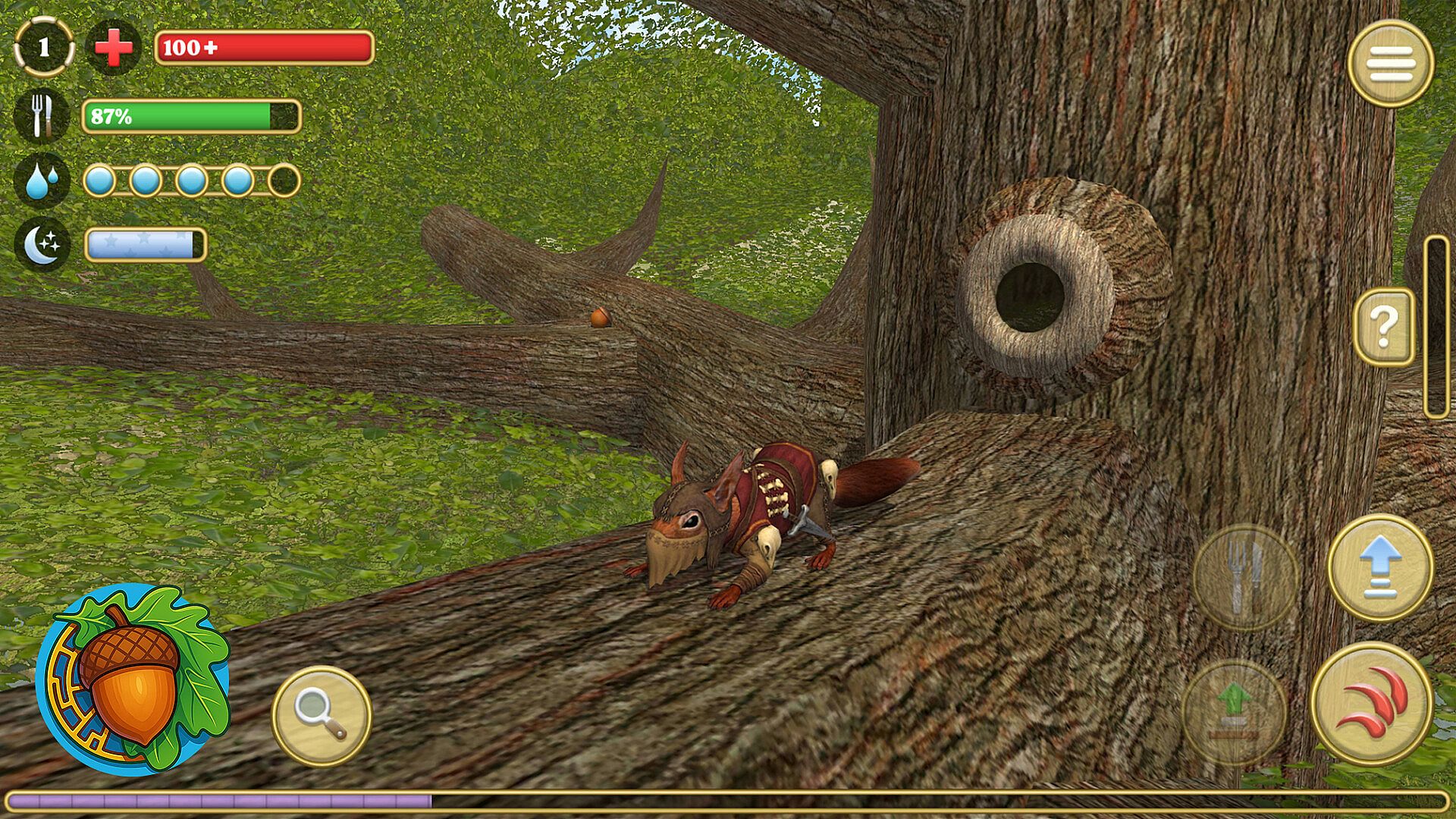 HOLLOW. You will be able to collect acorns, mushrooms, and berries, which can then be used to strengthen your family, improve your character, or buy a new hollow. In the hollow, you can build a nest of branches and sleep sweetly in it.
