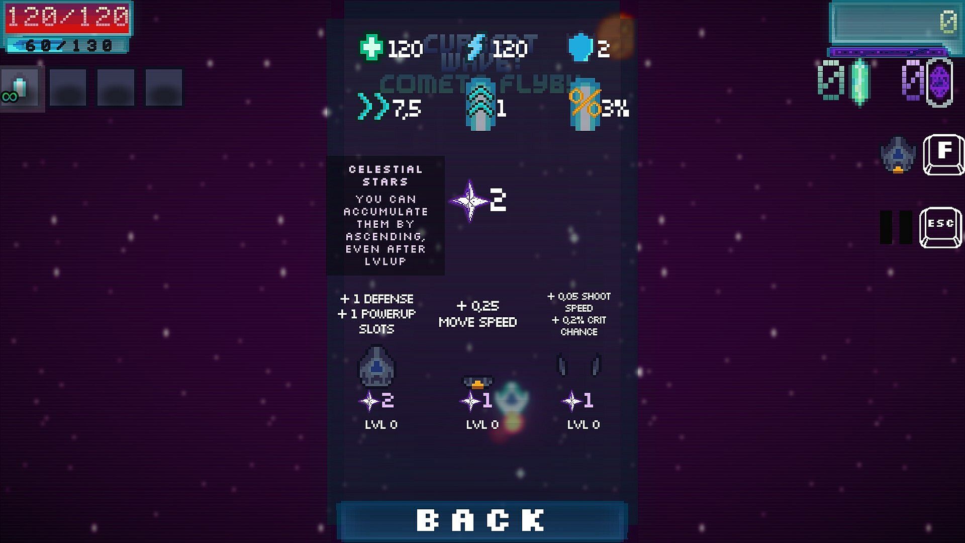 • A unique progression system; The so called Celestial Energy is not only your XP, but also an asset used with some weapons or skills. After hitting a ceiling of this energy you manifest a Power Core used for Module & Skill unlocks, and can Ascend, gaining a Celestial Star, that can be used for direct Ship stat upgrades