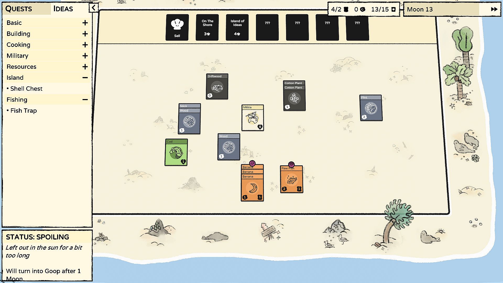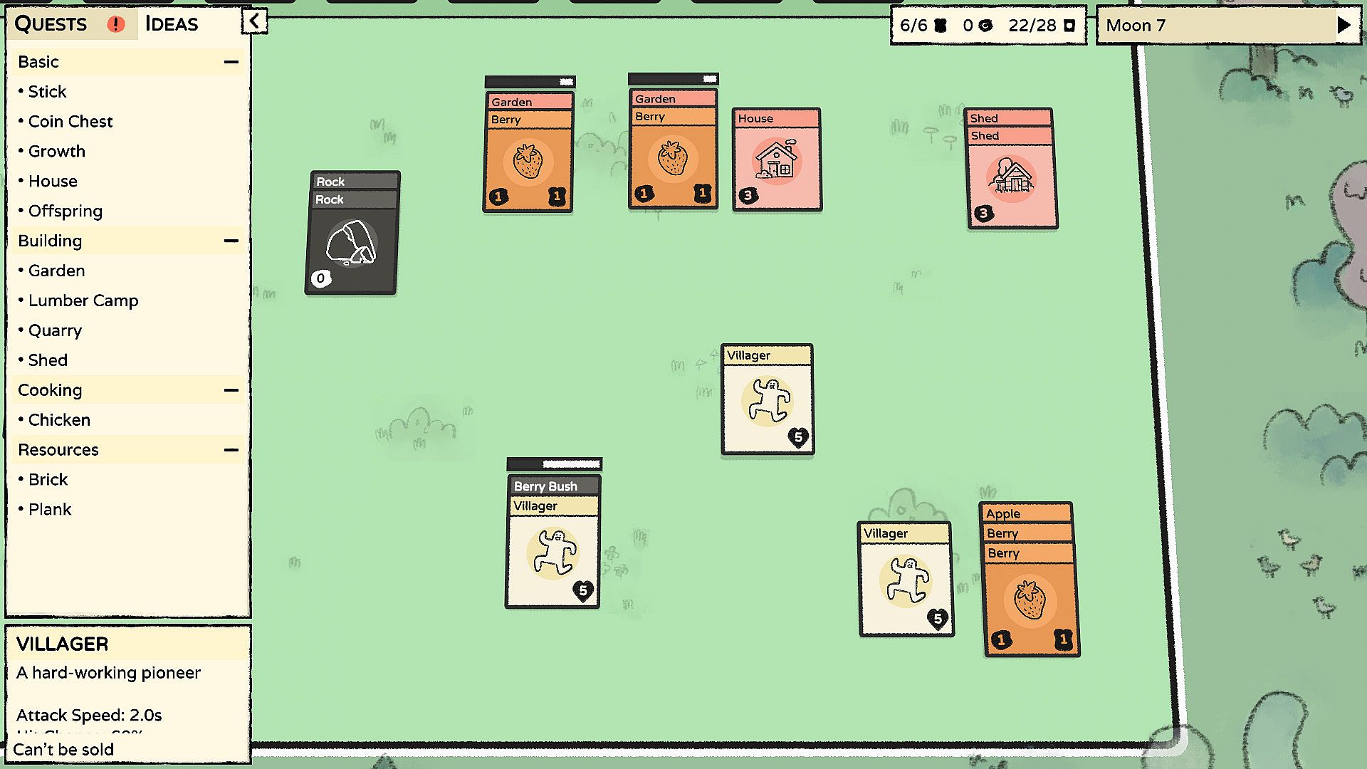 For example, dragging a 'Villager' card on top of a 'Berry Bush' card will spawn 'Berry' cards which the villagers can eat to survive!
