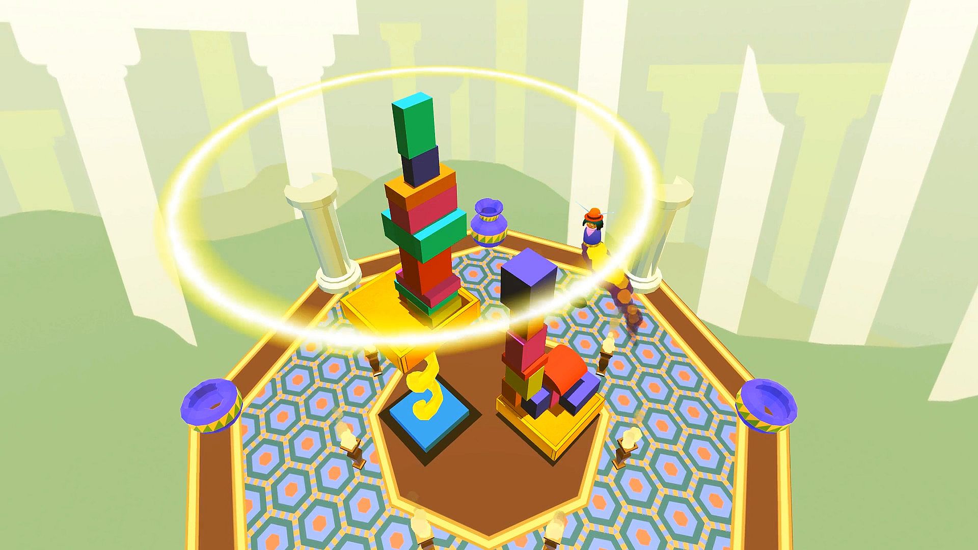 - Story mode: 36 stages featuring twists on stacking such as constructing on quicksand or a giant spring scale.