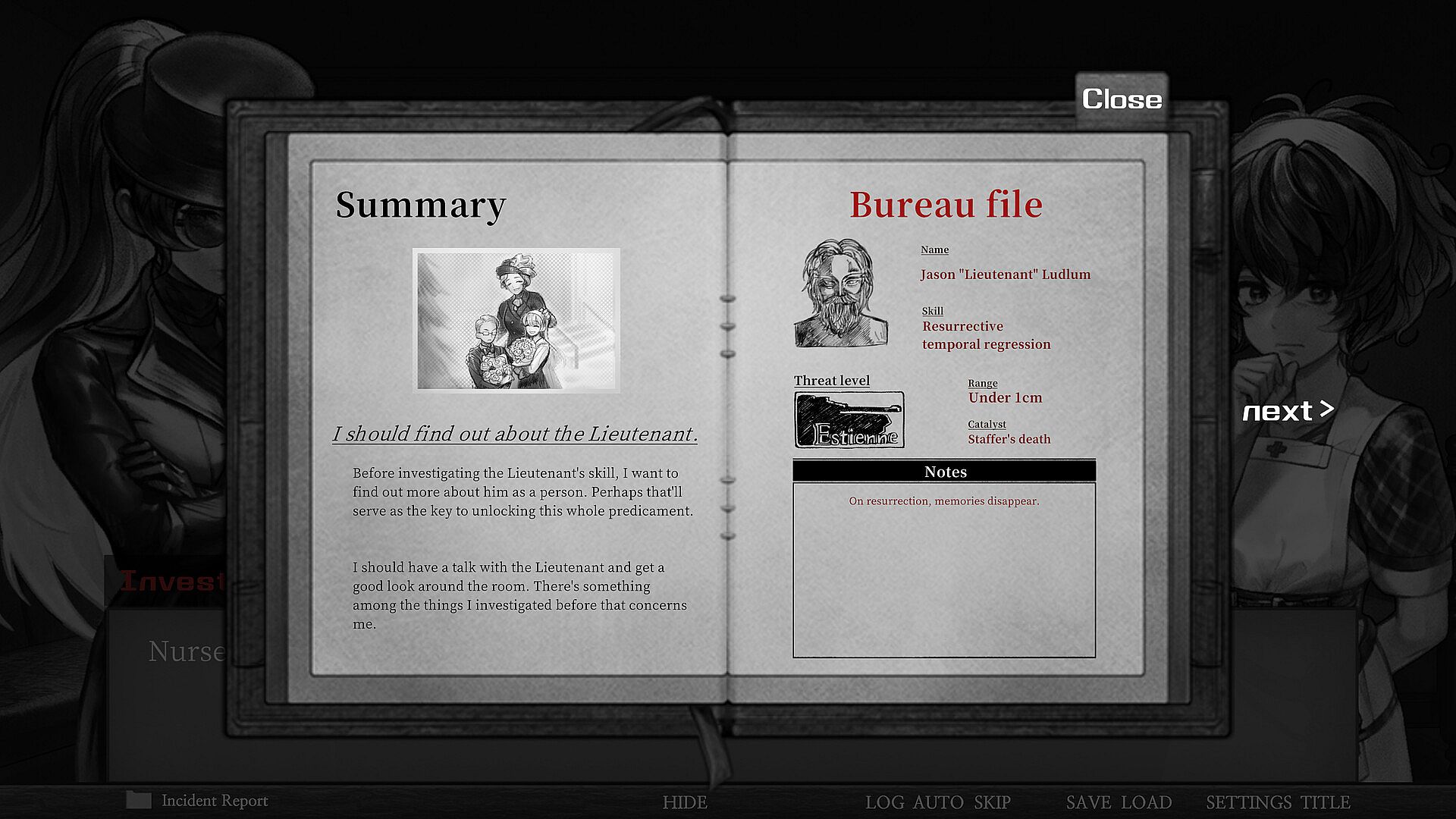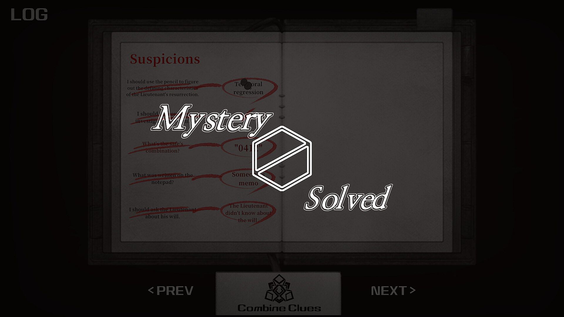 If you succeed in collecting all the information there is to uncover, at that point, it'll be time to start logically deducing what you can from it. Ensure you've got a solid grip on the situation surrounding the Lieutenant thus far. Use the information in your records to uncover new truths lying in wait.