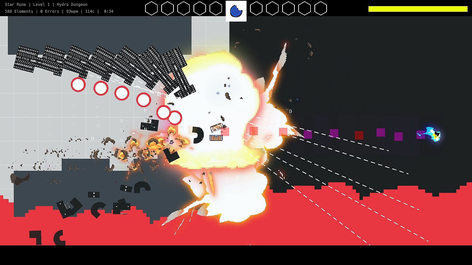The movement in Star Rune is completely akin to real-world typing. You are not holding WASD to move half the game; you dash attack to move through the level. In addition, [SPACE], [SHIFT], [TAB], and [ENTER] are all integrated into the game in an intuitive way which mimics the same frequency of real typing.