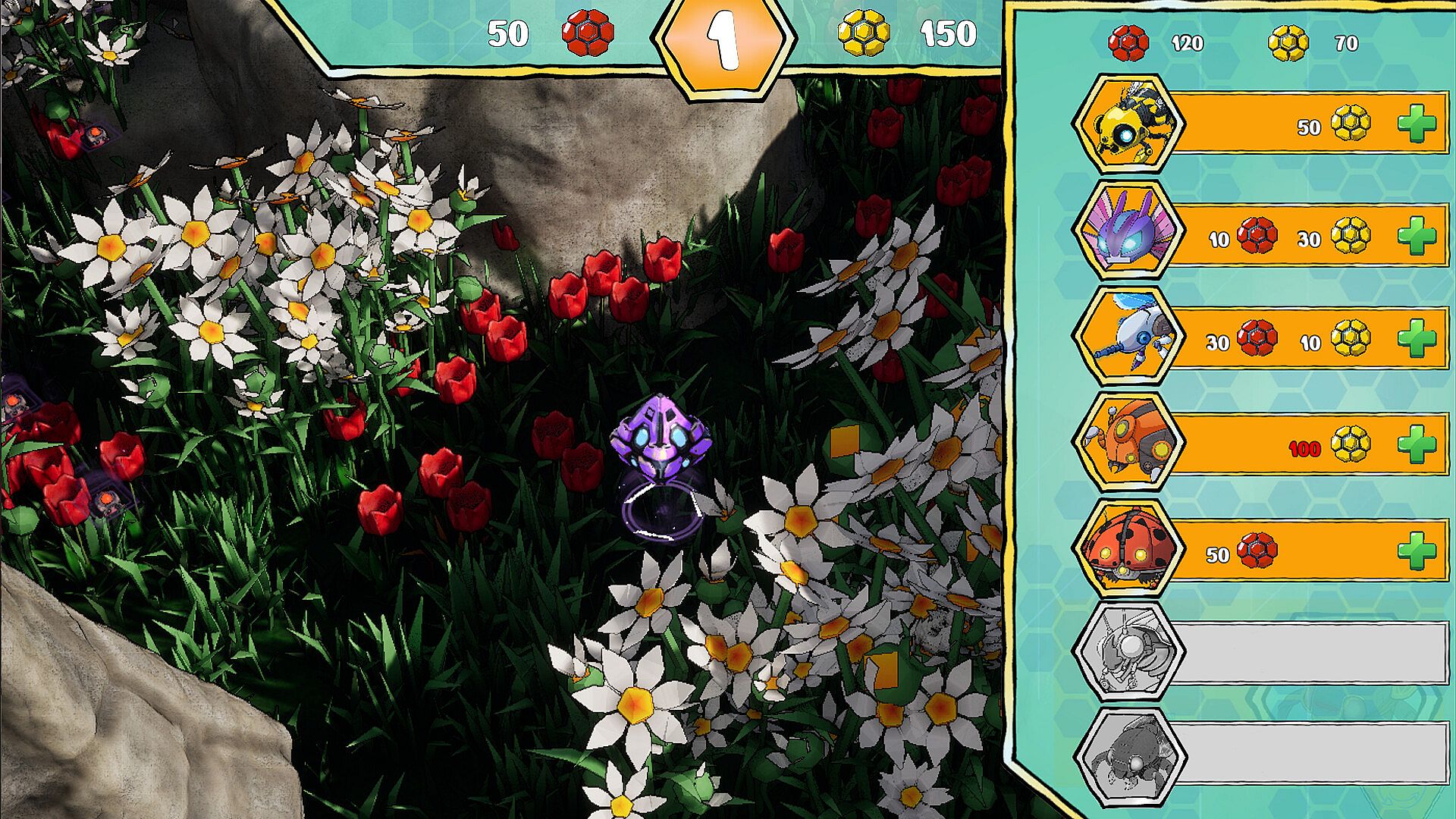 Seven unique insect-ships are available. Fighter, healer, bomber... Each ship has its own role and unique abilities. It’s up to you to recruit the right ships to lead you to victory.