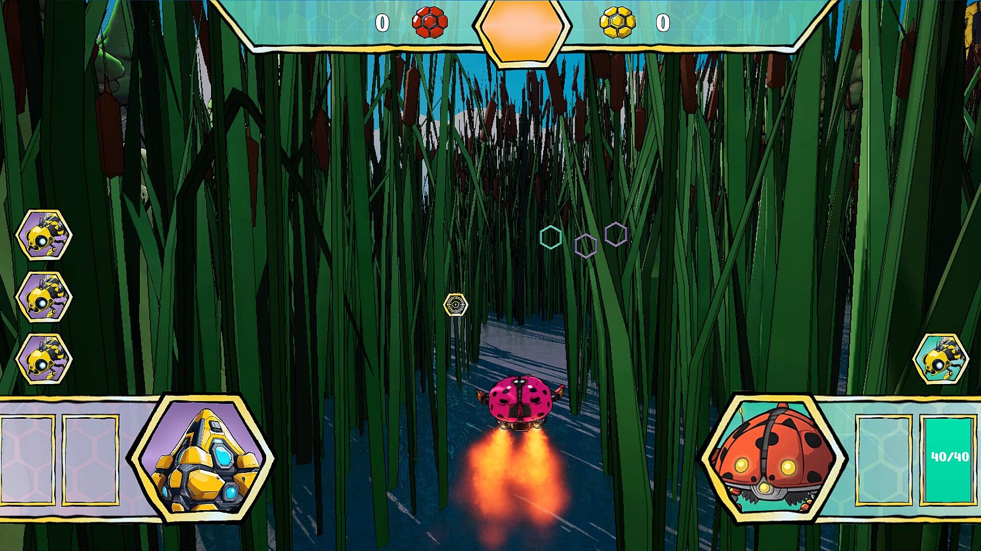 Explore environments at the scale of an insect. Carve your way through tall grass, navigate upstream rivers, or delve into a mysterious cavern in search of your opponents, destroying their ships before they find you.