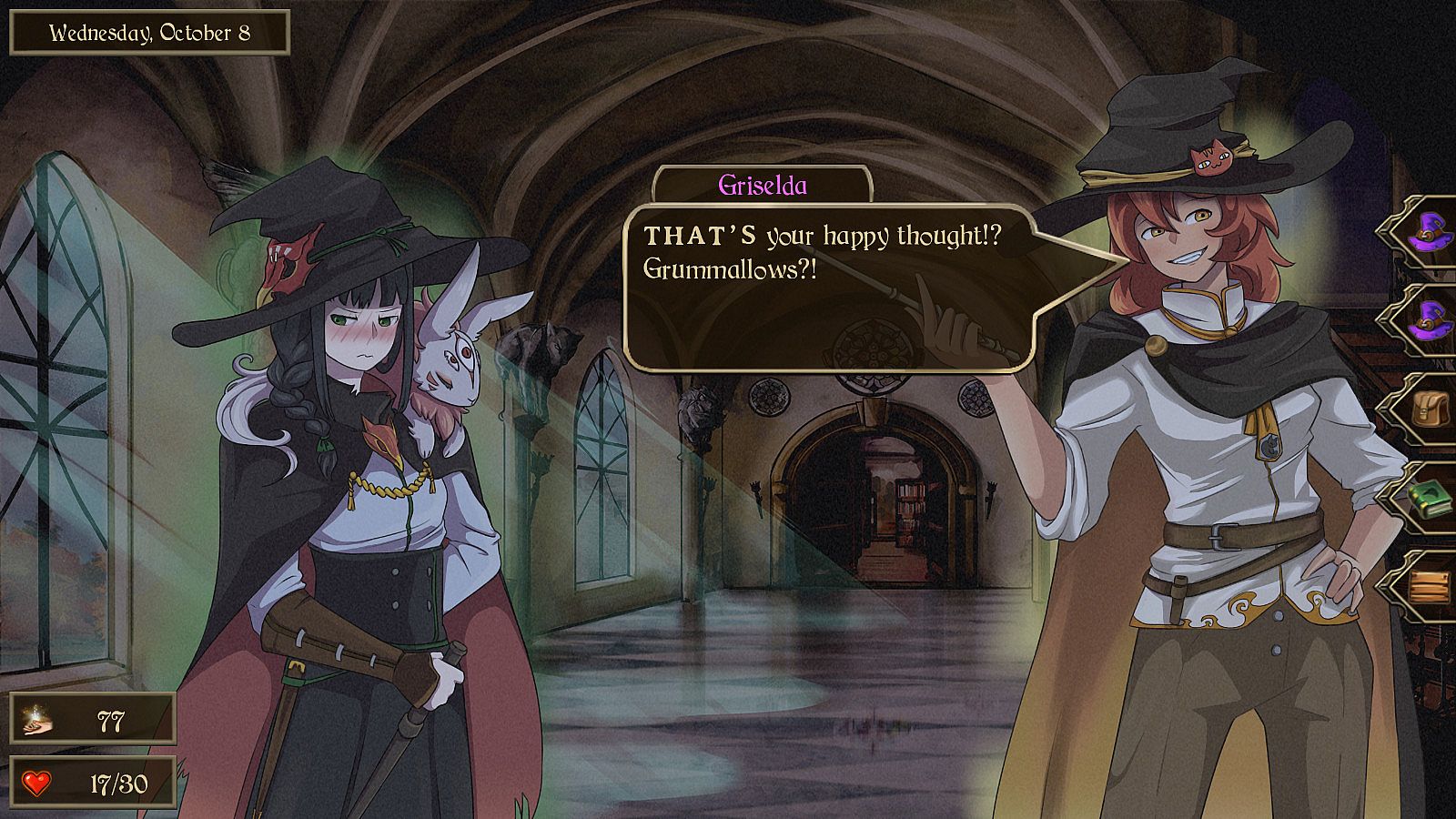As Griselda, a playful young witch, you can: