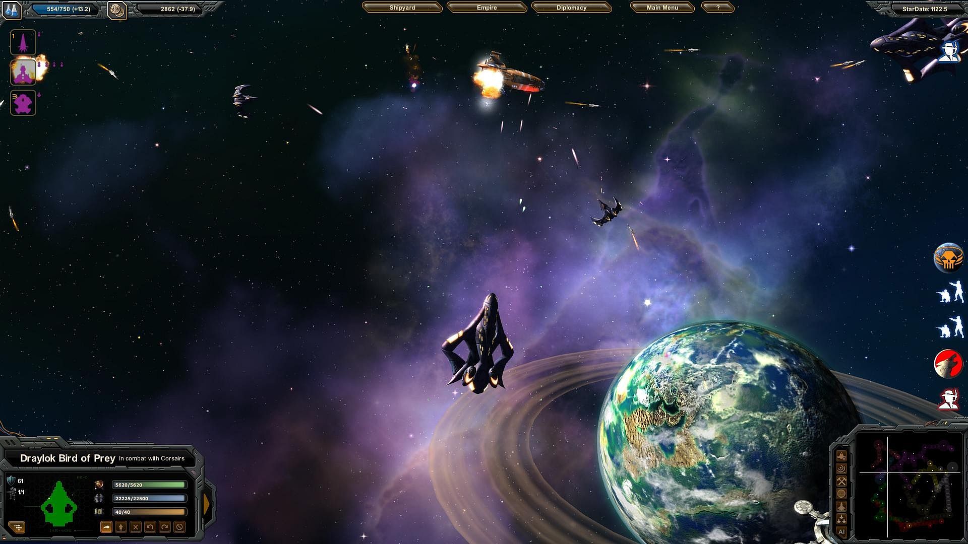 - Control your ships with classic real time strategy commands or jump into the fray by taking direct ‘arcade’ control of any ship in your empire
