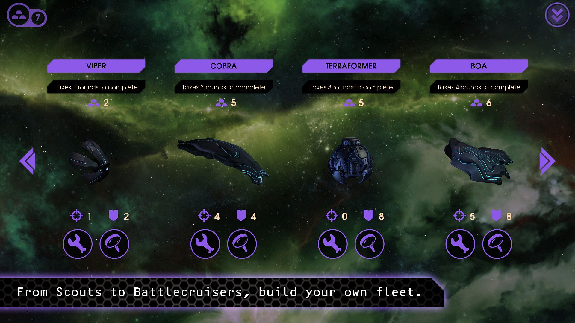 - Construct ships that range from small, agile scouts to colossal battle cruisers