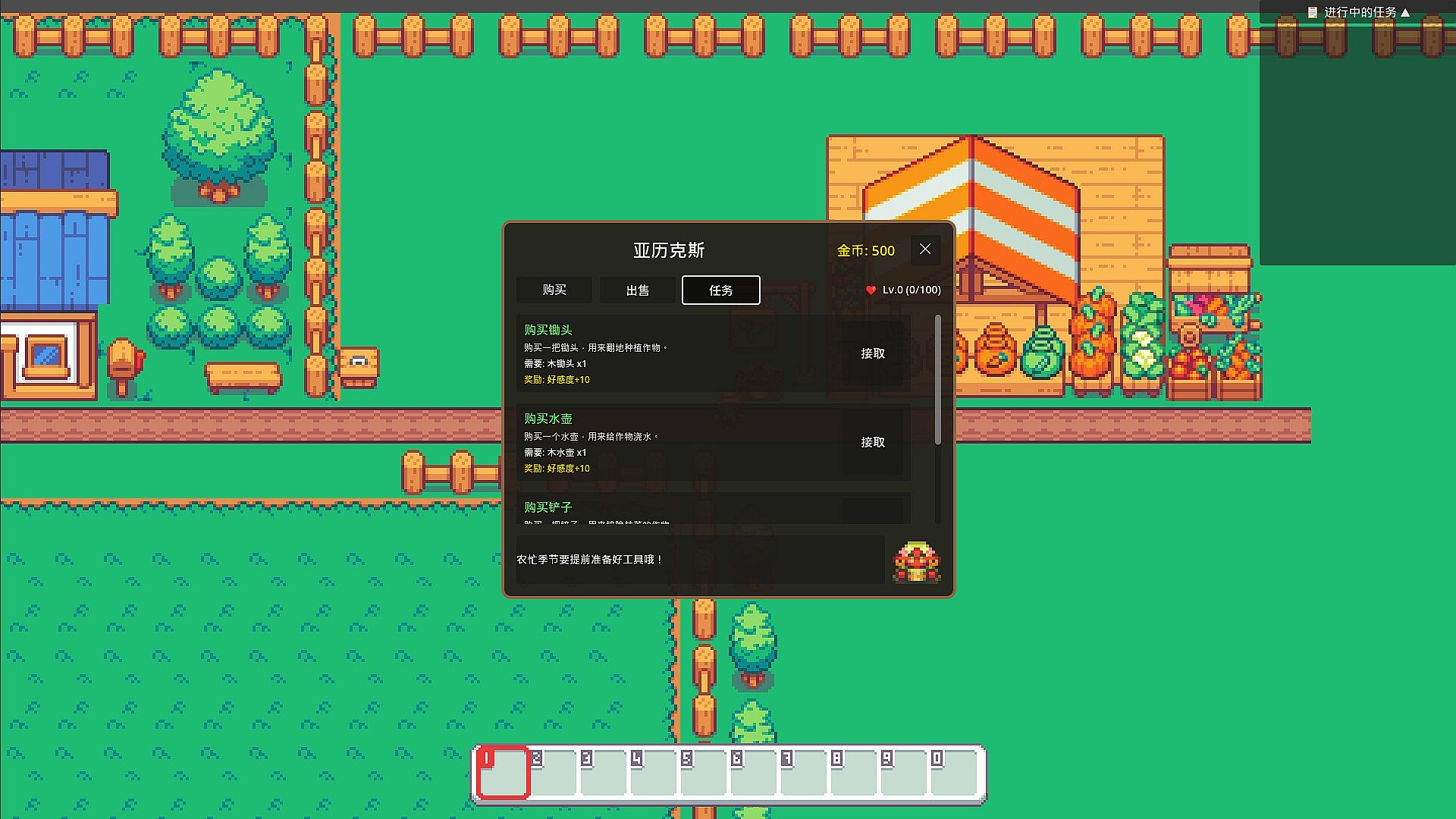 Not sure what to do? The quest system will guide your way. From the basic "Buy your first hoe" to the ultimate challenge "Seed Grandmaster," every quest is a milestone on your growth journey.