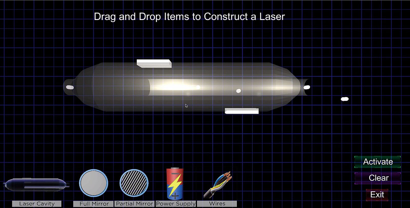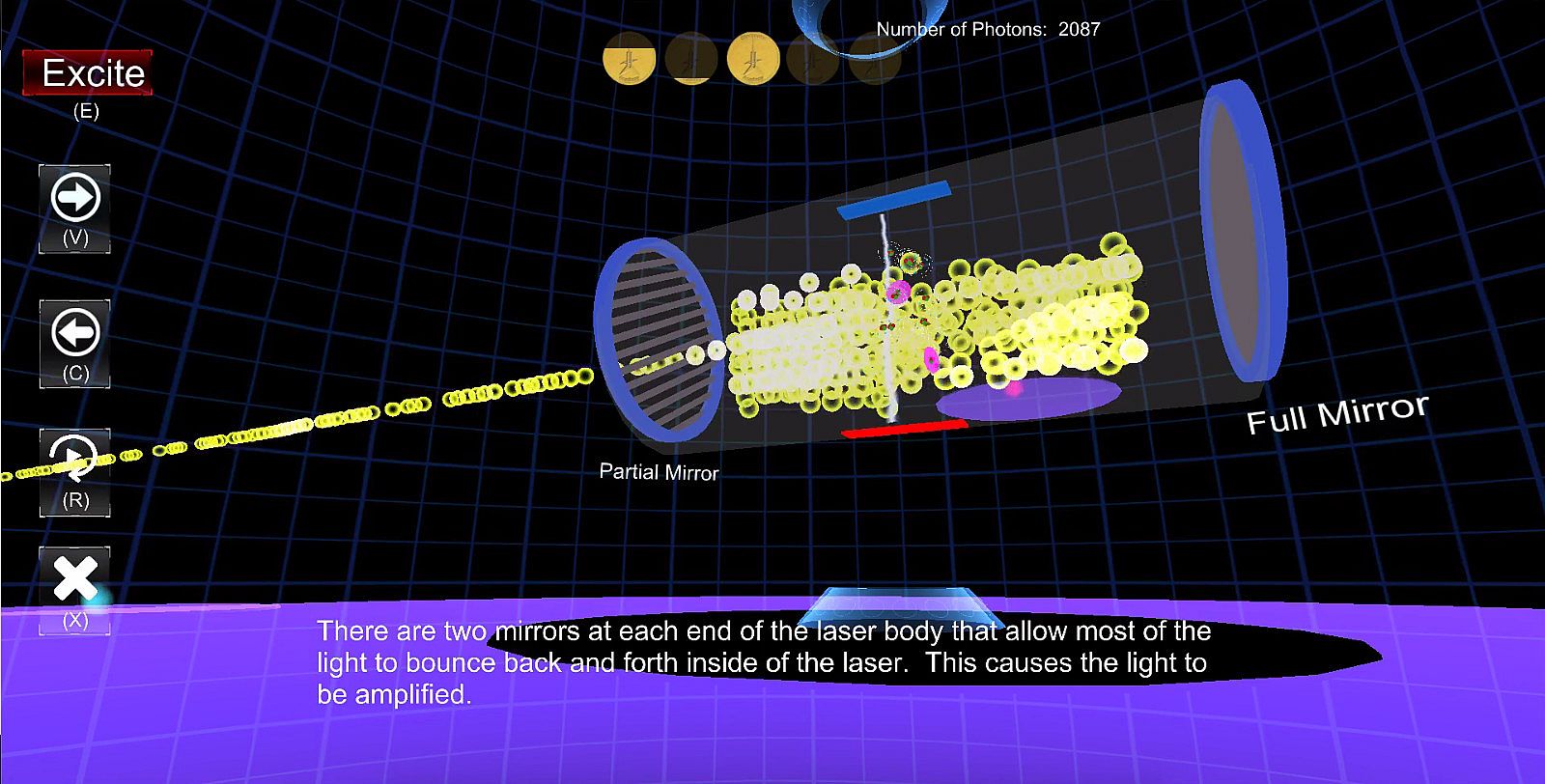 While in the NEXIS environment, you will learn about how lasers operate from an atomic scale through how to build a laser, as this is an important component of the propulsion system onboard the space shuttle.