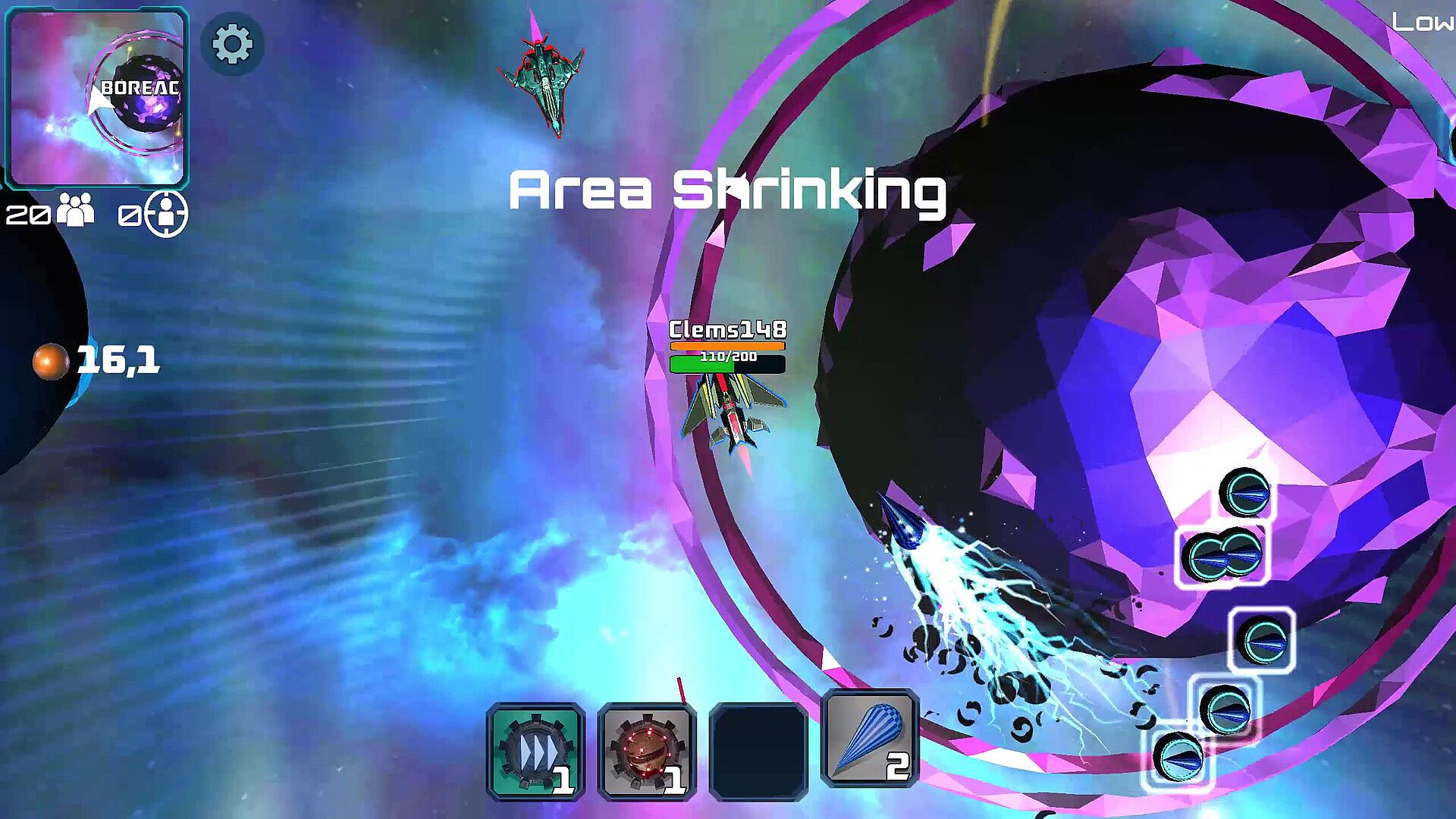 Earn XP by winning battles and unlock a variety of unique items in the Space Pass, our exclusive battle pass. Customize your spaceships with lasers, thrusters, and much more!