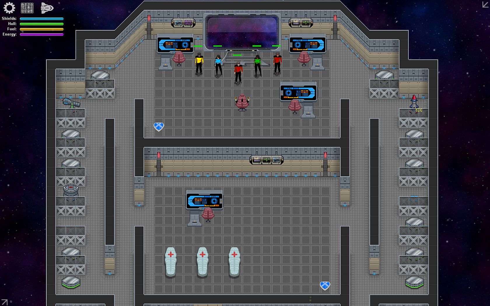 - Interior ship gameplay such as assigning crew members to various stations, repairing ship damage, and healing injured crew members