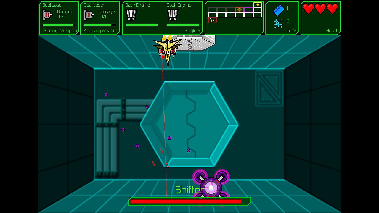 Starshot is a difficult action-orientated shoot em up with rogue-like and dungeon crawler elements. Fly your starship through multiple randomised levels collecting unique combinations of weapons, engines, defences and augmentations. Every playthrough will be different as you face different bosses, collect different upgrades and explore unique levels. Use keys to unlock chests and augmentation rooms, spend your hard-earned stardust in the store and explore the rooms for items. Can you use your ace piloting skills to collect enough stardust to escape the facility or will you be destroyed in the process?