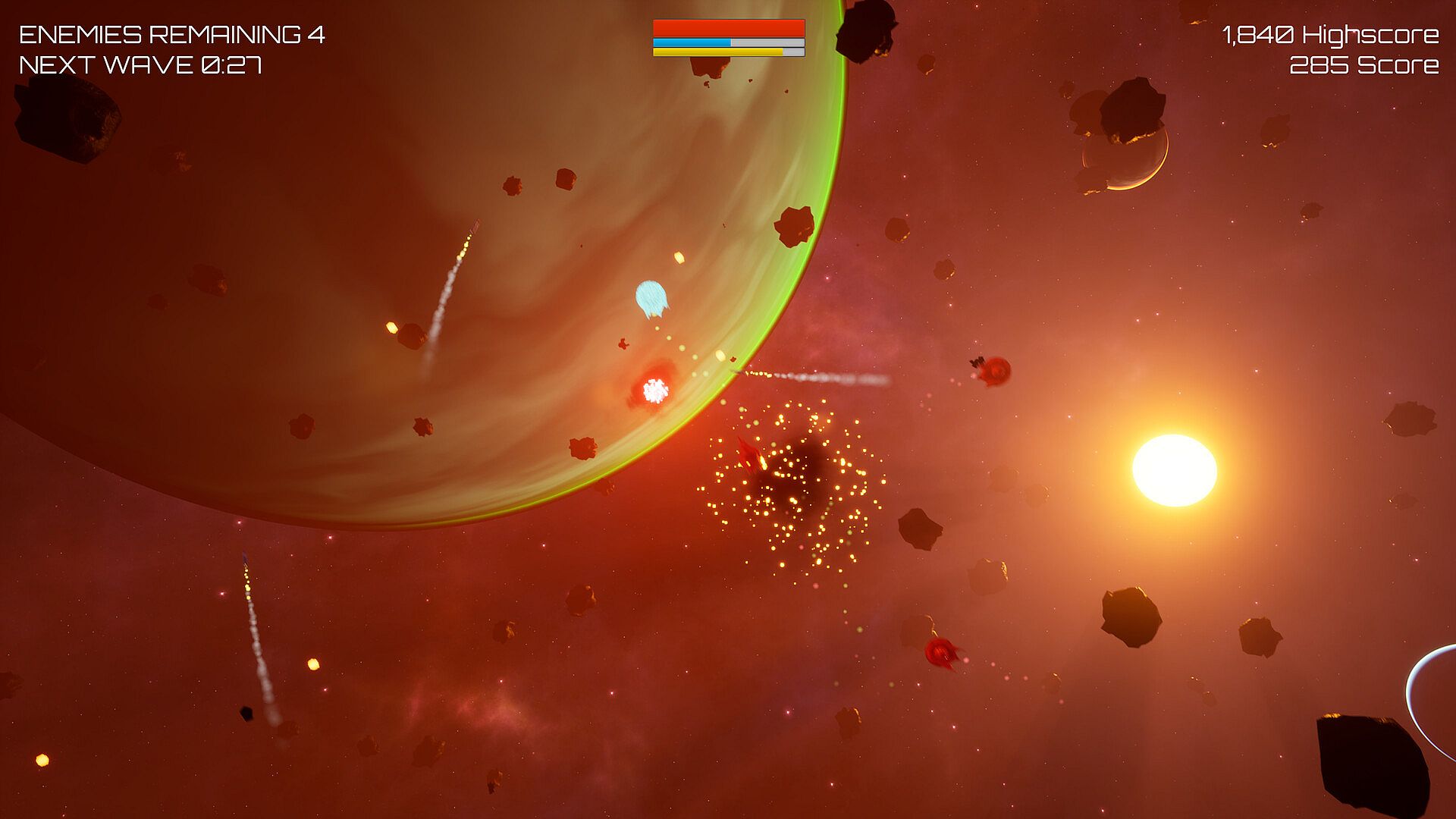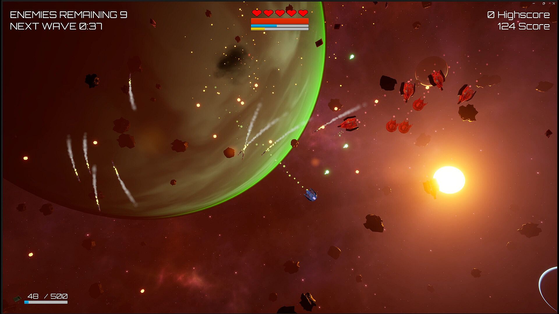 The Wave will constantly send fresh ships to hunt you down. The Wave is never ending. You have a limited number of ships; make your time count, Defender.