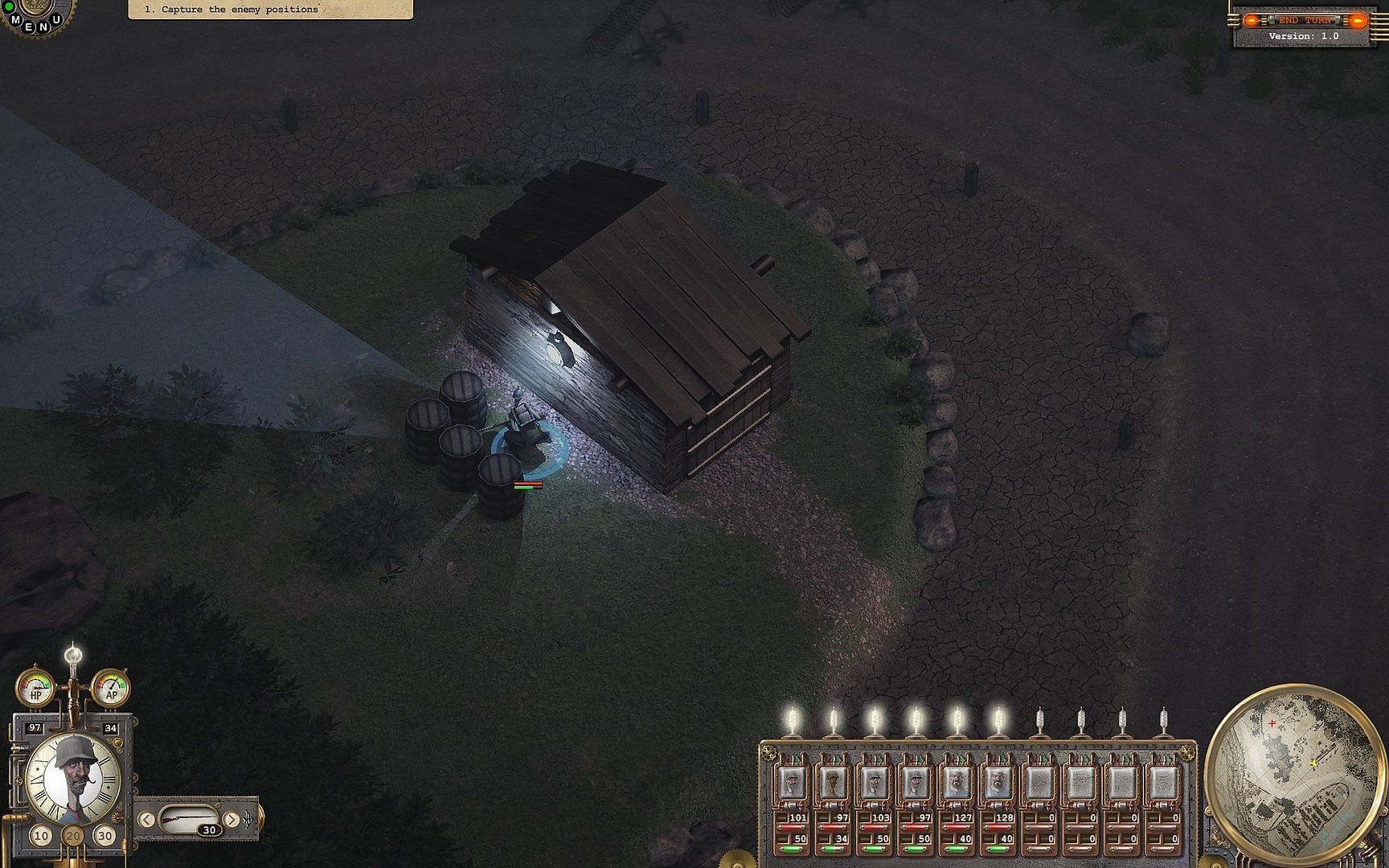 Players acting for the 3 of the world superpowers - Britain, Tianxia and the Holy Roman Empires have teams of up to 8 units equipped with guns and machinery of the times of WWI in order to complete 30 tactical missions. For instance, you can be asked to capture an area, defend a lodgement or a person, attempt to sabotage, etc.