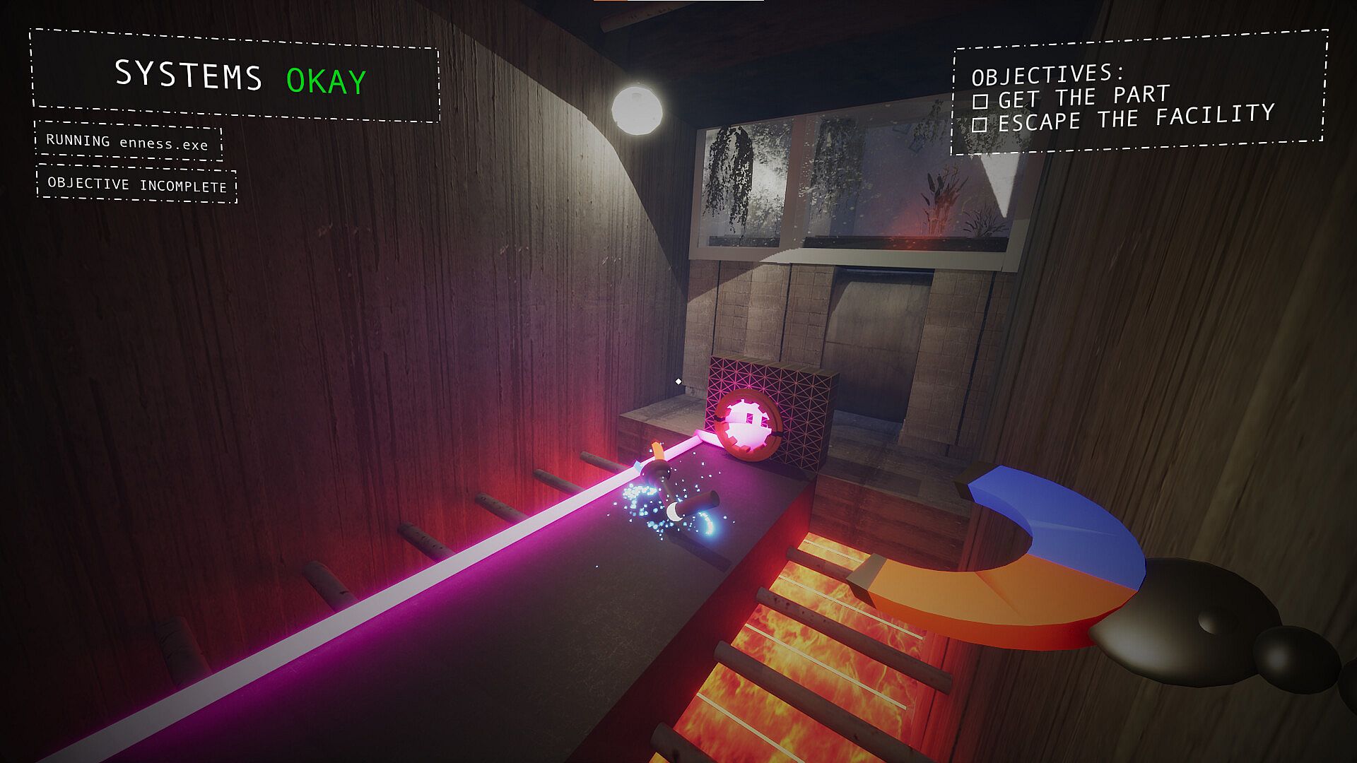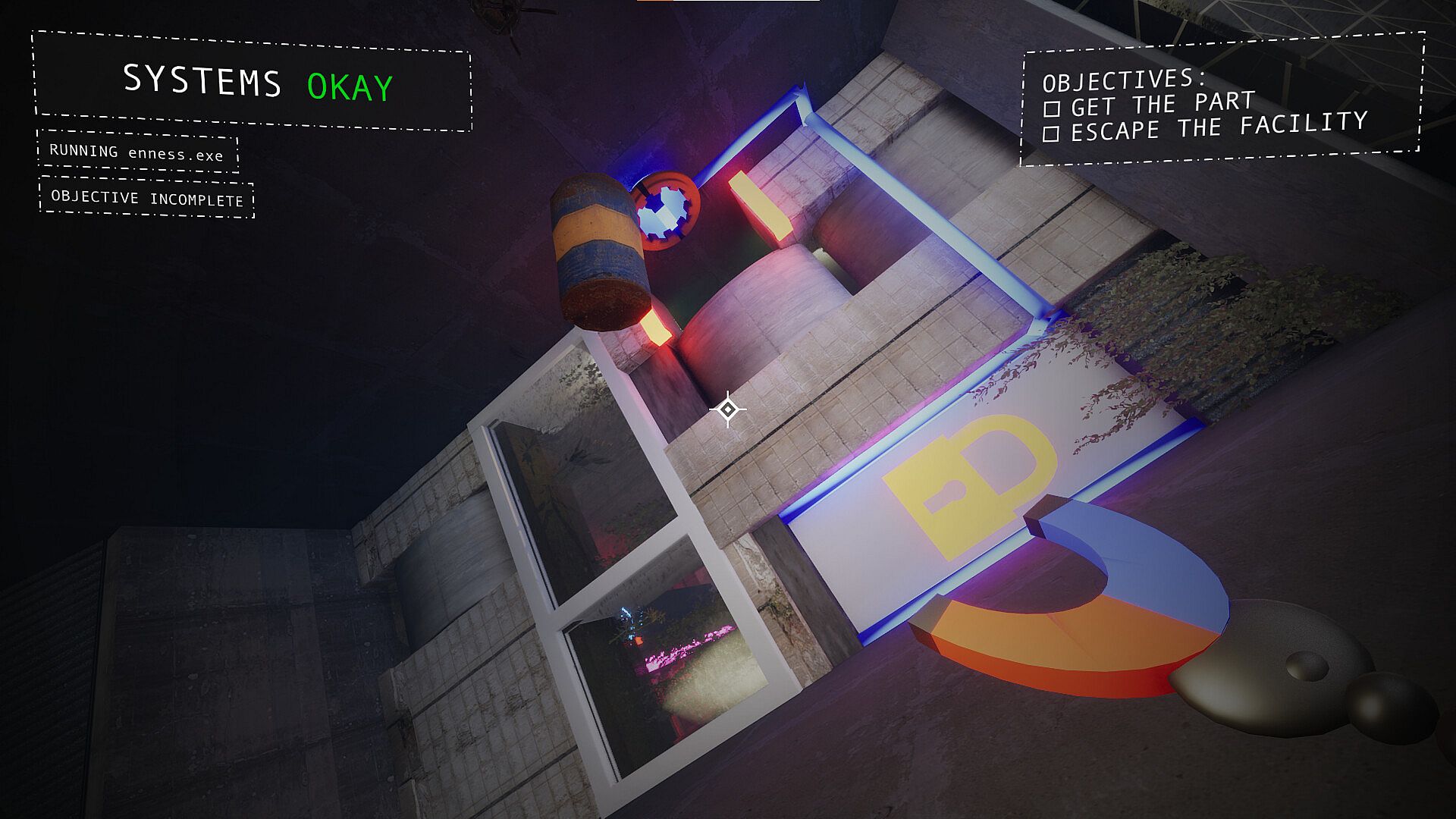 Stellar Larceny is a zero-gravity puzzle-platformer where players take the role of Enness, a sentient robot under the control of the mysterious GAUSS Systems. After an unknown program frees them from GAUSS' influence, they must escape the facility and help save their friend from the brink of deactivation.