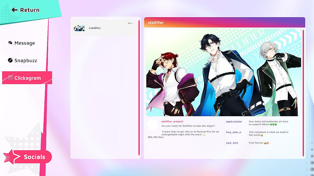 “Stellifier” is a choice-driven, visual novel where you play as a journalist, covering the scoop of the year - the comeback of Stellifier, a group of older idols attempting to re-debut. Will you write about their journey or will you fall for their charm amongst the three idol love interests (male or non-binary).