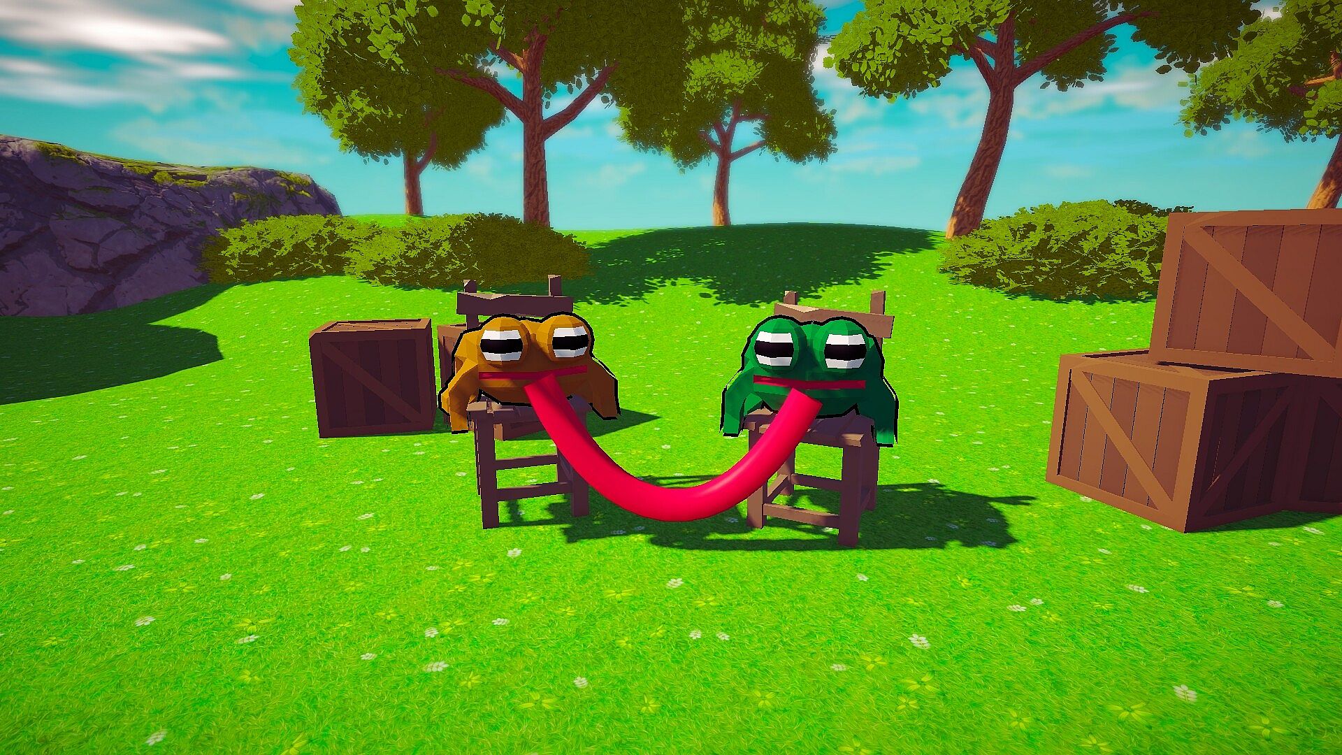 Start your adventure with a friend in the core 2-player experience. Each frog moves independently, but your tongues stay fused, meaning every leap, swing, or fall directly affects your partner. Communication and timing are your greatest tools… or your downfall.
