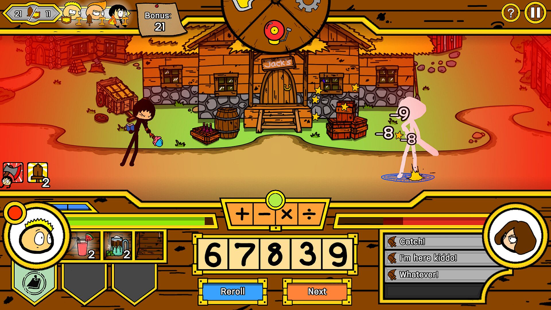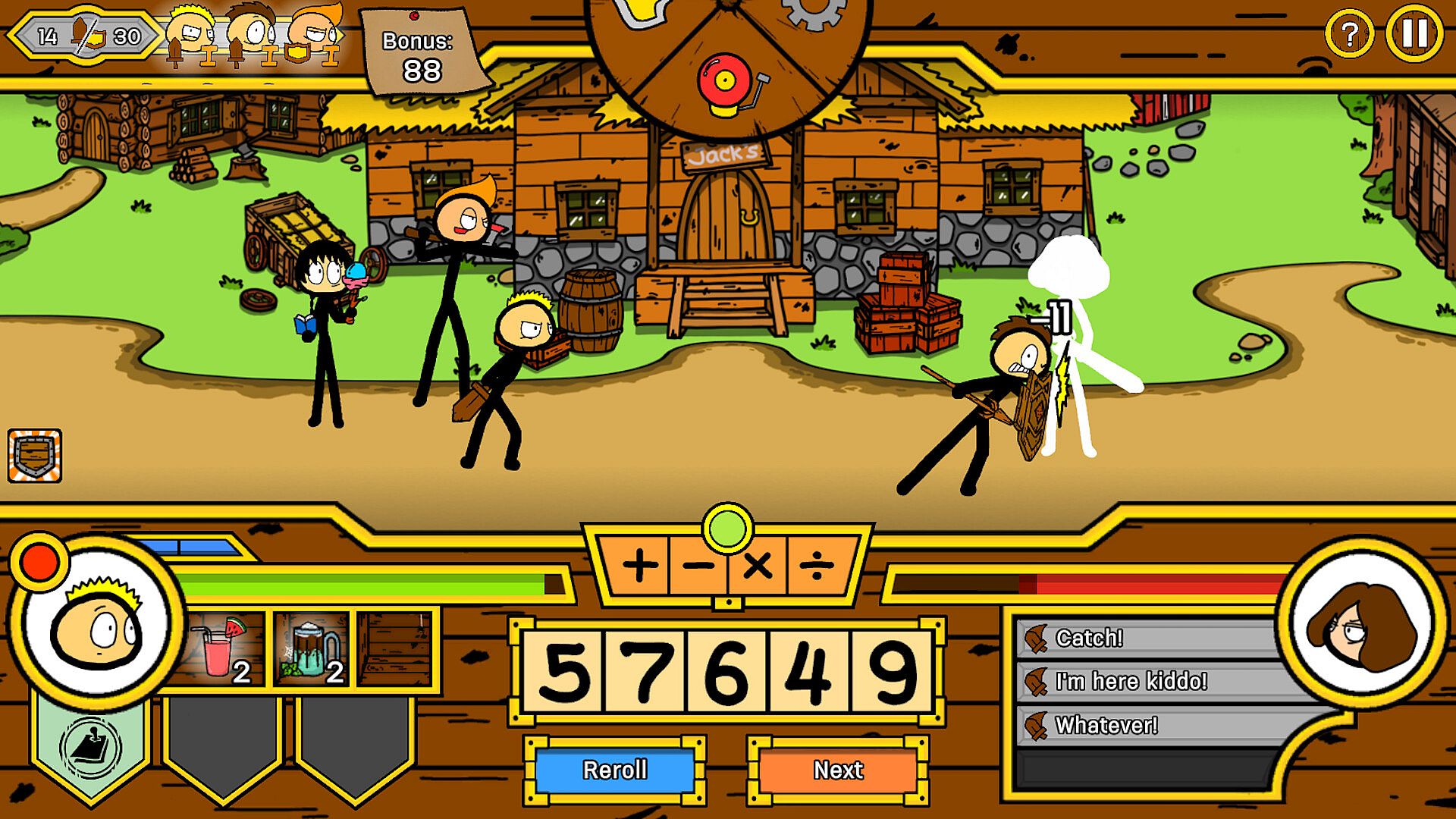 Perform a calculation to create your action and scale its effectiveness with the calculation result! Each operation links to a friend, which holds different abilities, and triggers them to attack when used in an equation. Your result will scale the strength of the friend(s) performing actions. Try out different combos in different scenarios!