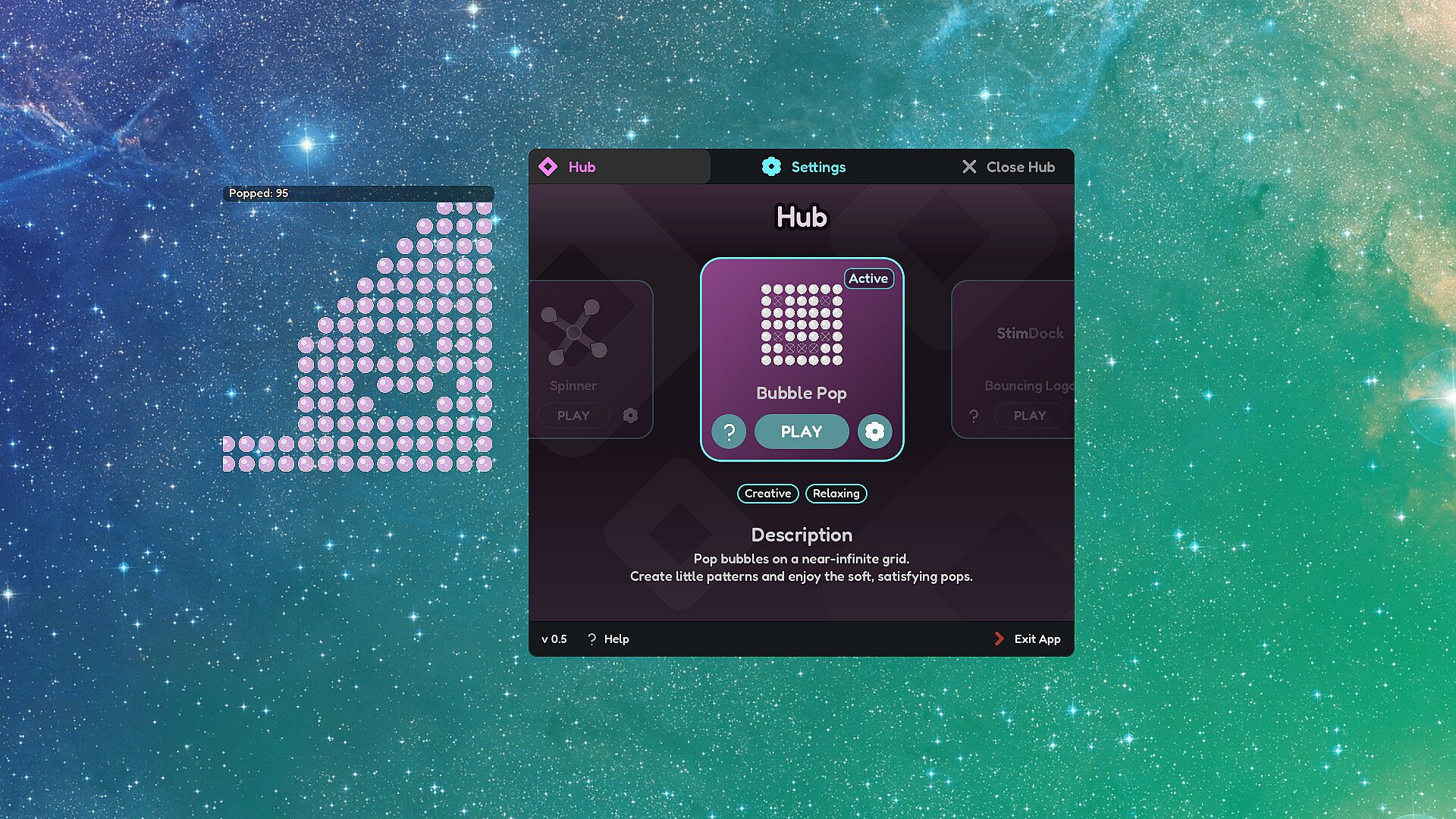 At its core, StimDock is a collection of small games and visual simulations that live on your desktop.