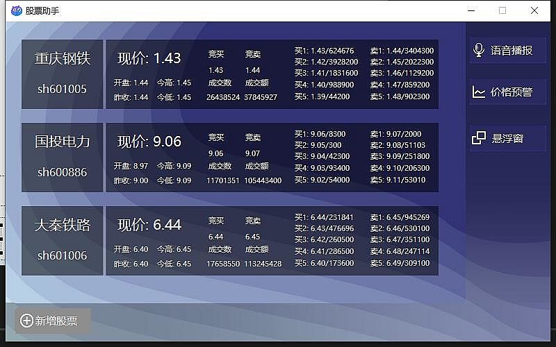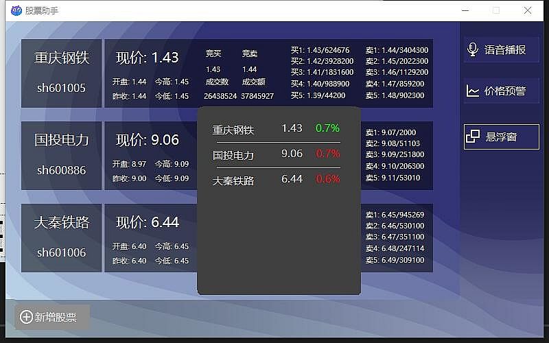 This is a stock tool for China. It can display the current stock price in the form of a floating window, or make voice broadcast. Convenient for you to pay attention to the market in the game or fish in the work.It is convenient for you to get the stock price at any time in work or game.