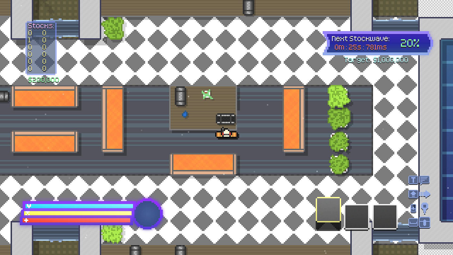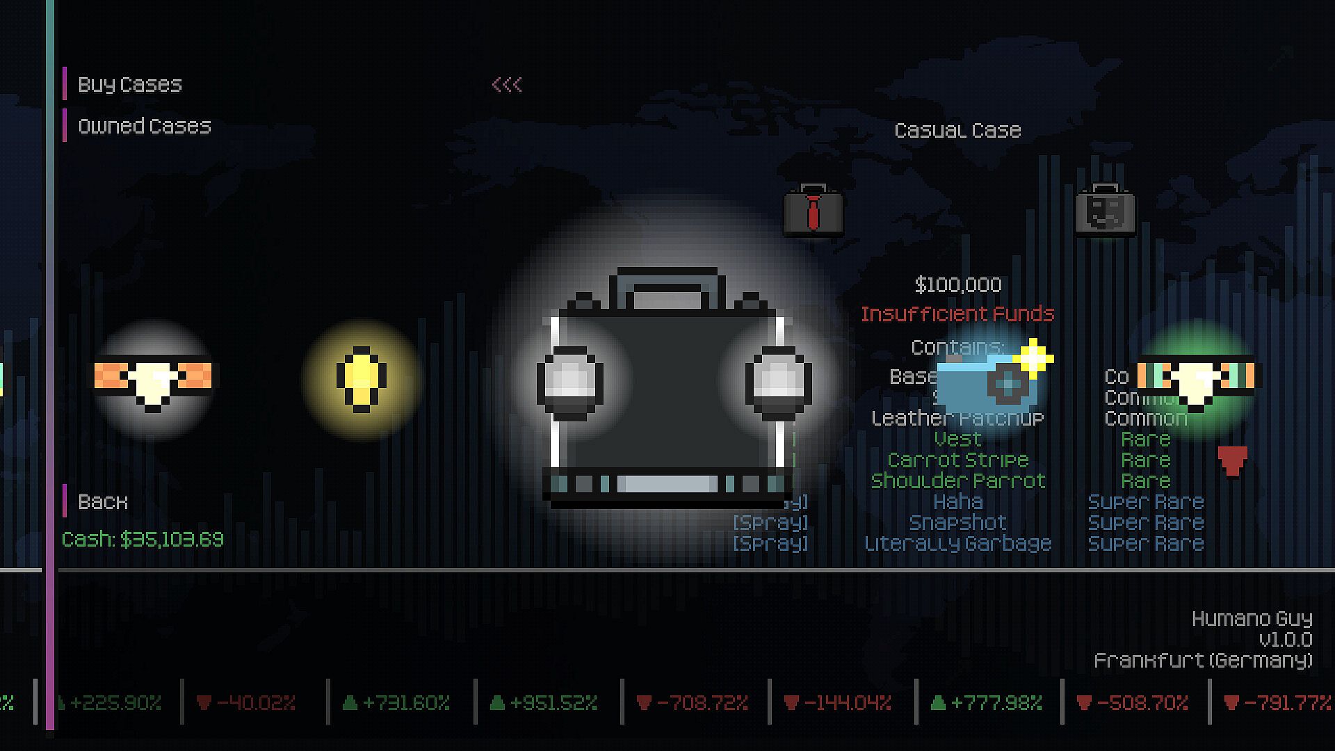 We built around strategy. Balancing systems to make a variety of different approaches viable in the long-term. Along with completely random stock-trading effects and item rotations, all games put players on a level field, focusing on what you decide to do with the world around you. Take advantage of these elements.