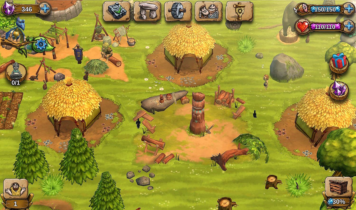 - Expand your village and build numerous huts and buildings