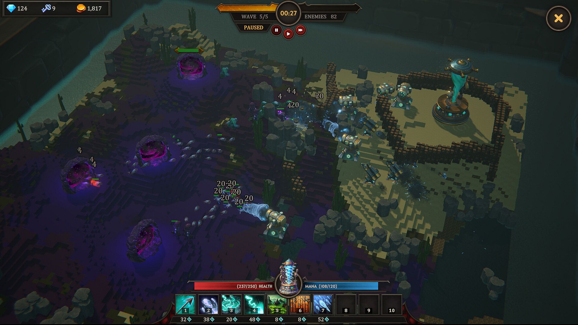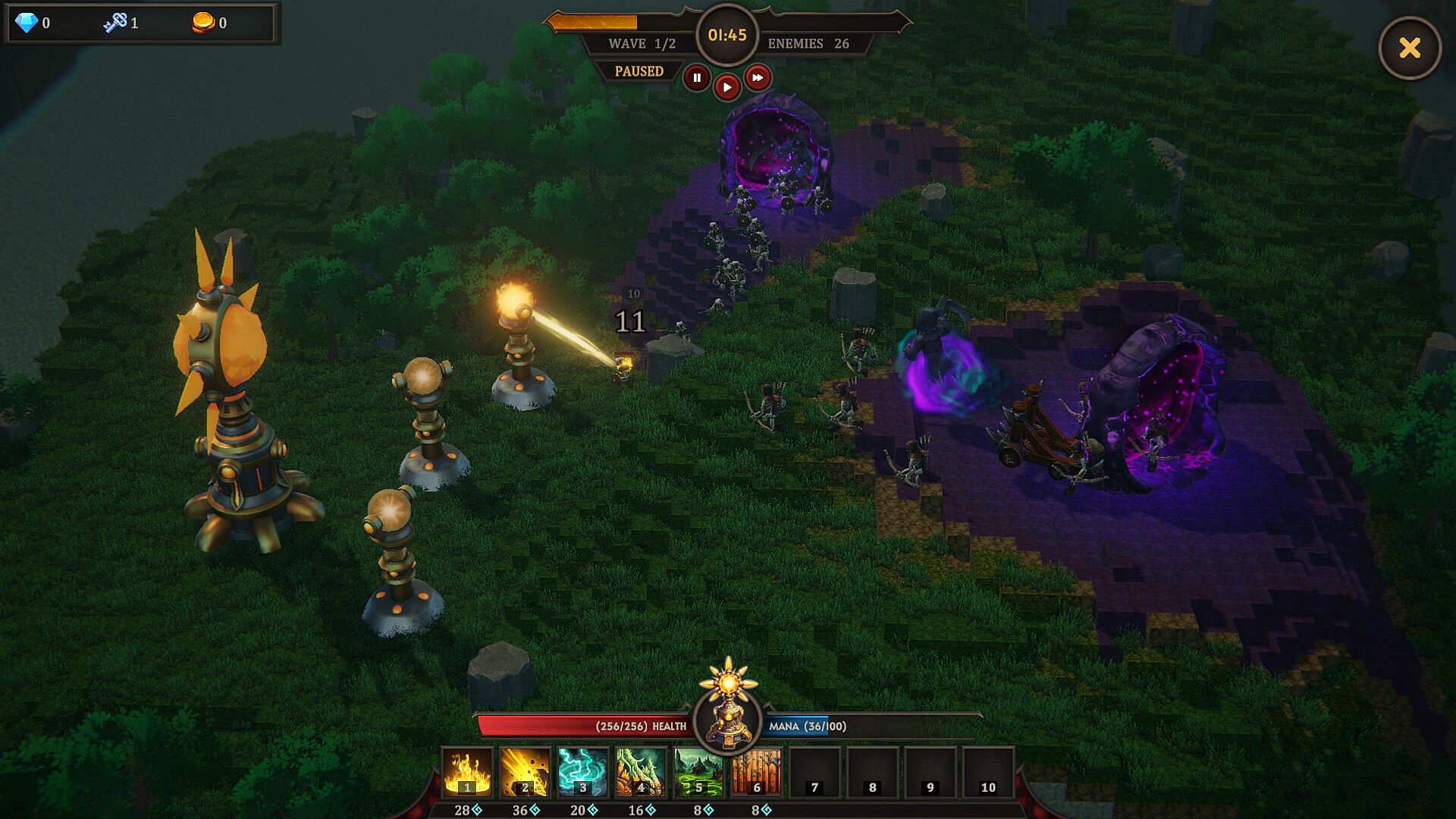 • Choose from 6 elemental Cores, each with unique starting towers and spells